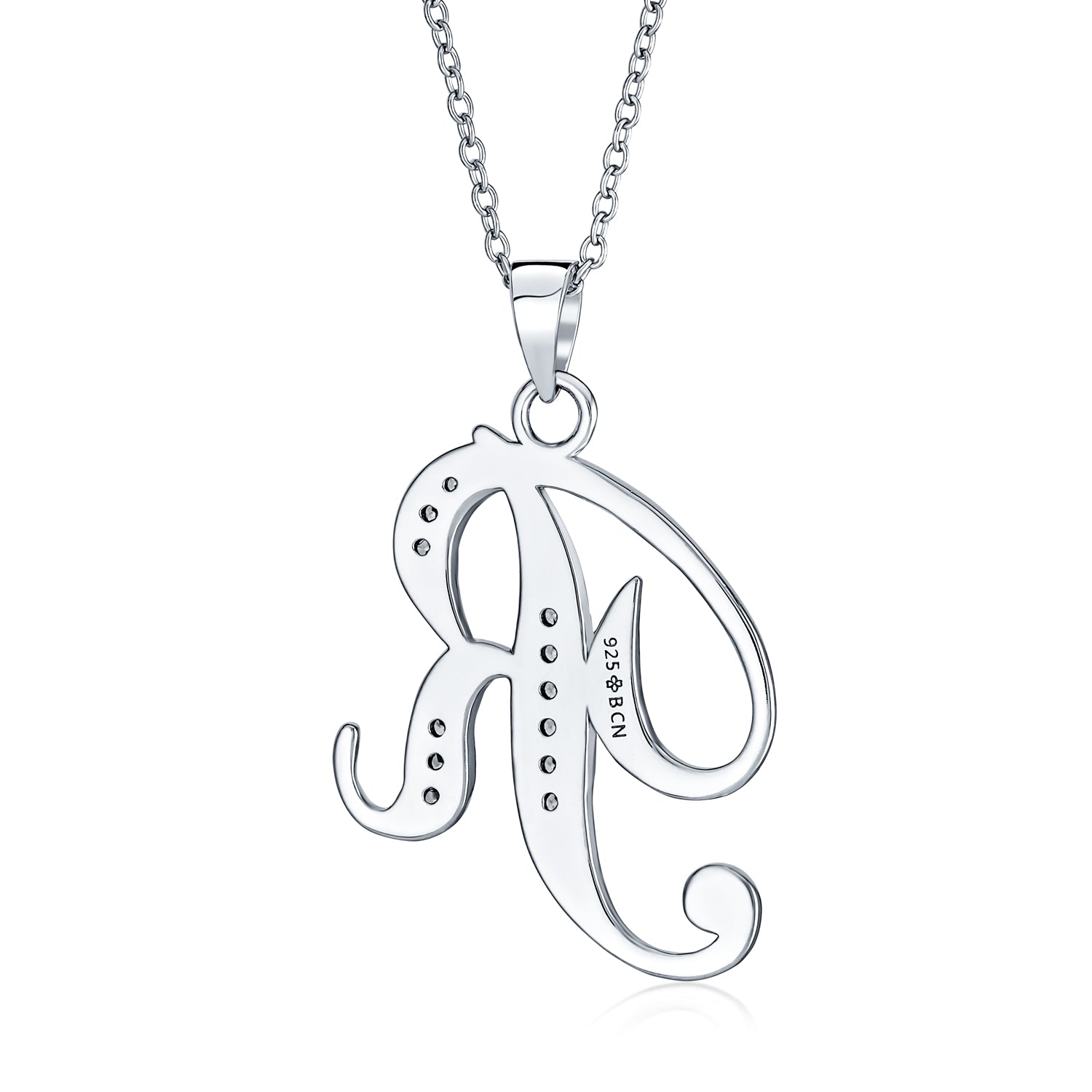- BEAUTIFUL STYLE - Enhance your jewelry box with this 16in initial necklace. The pave CZ compliments this rhodium plated alphabet pendant. No matter what "R" stands for in your life, this is a beautiful addition to your jewelry box.