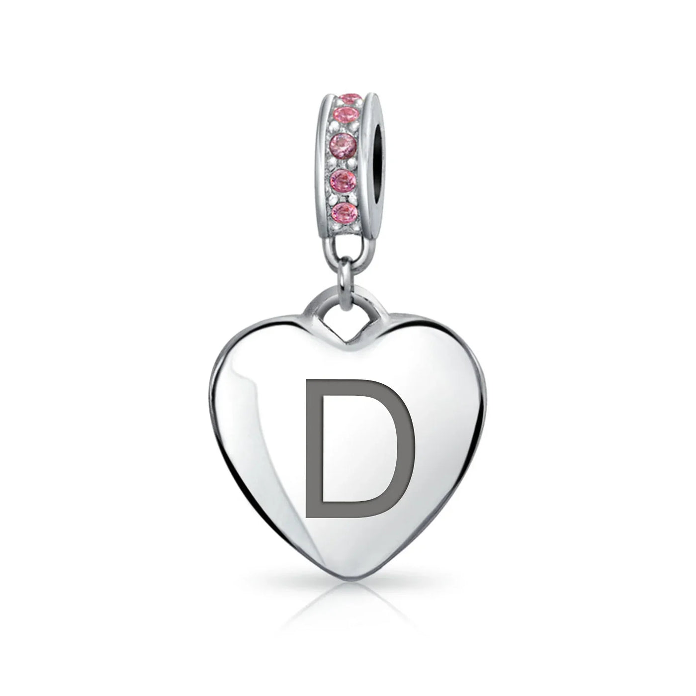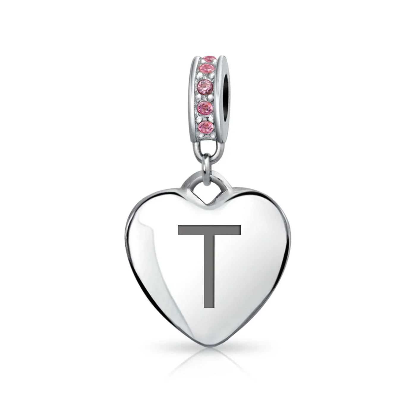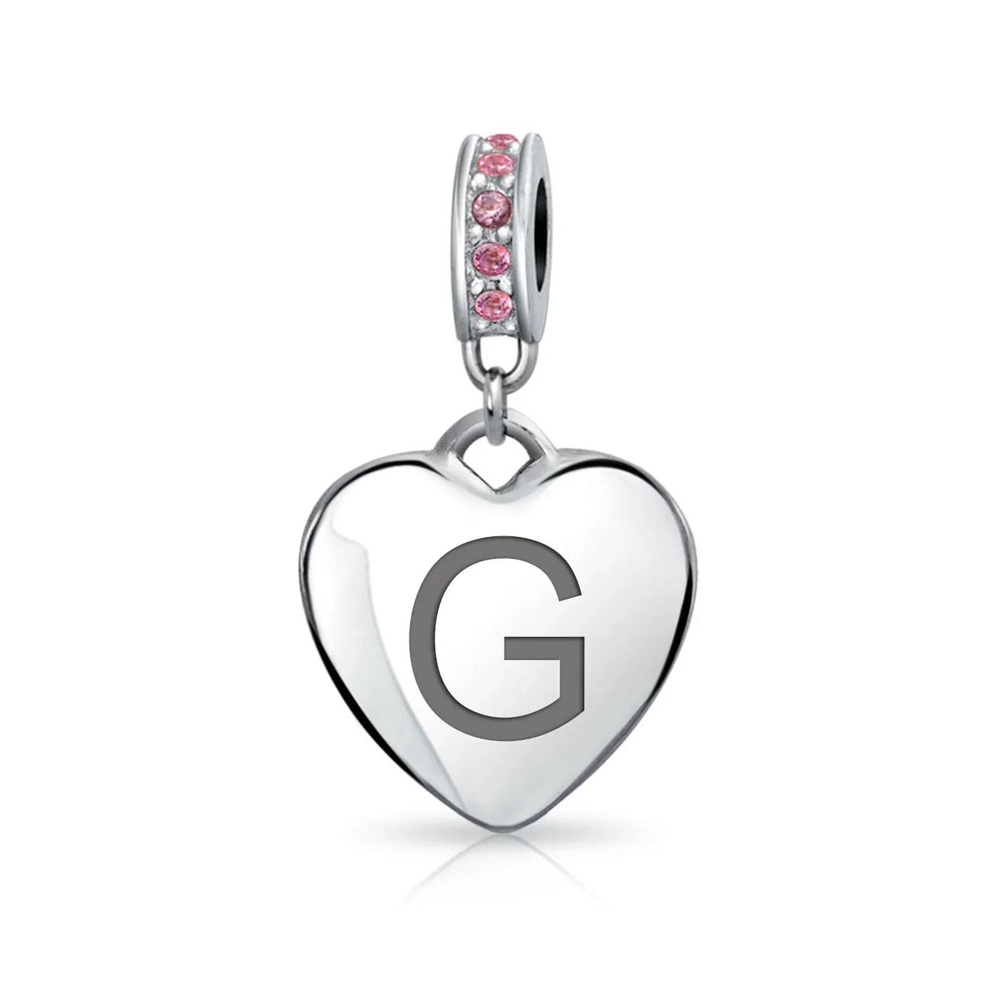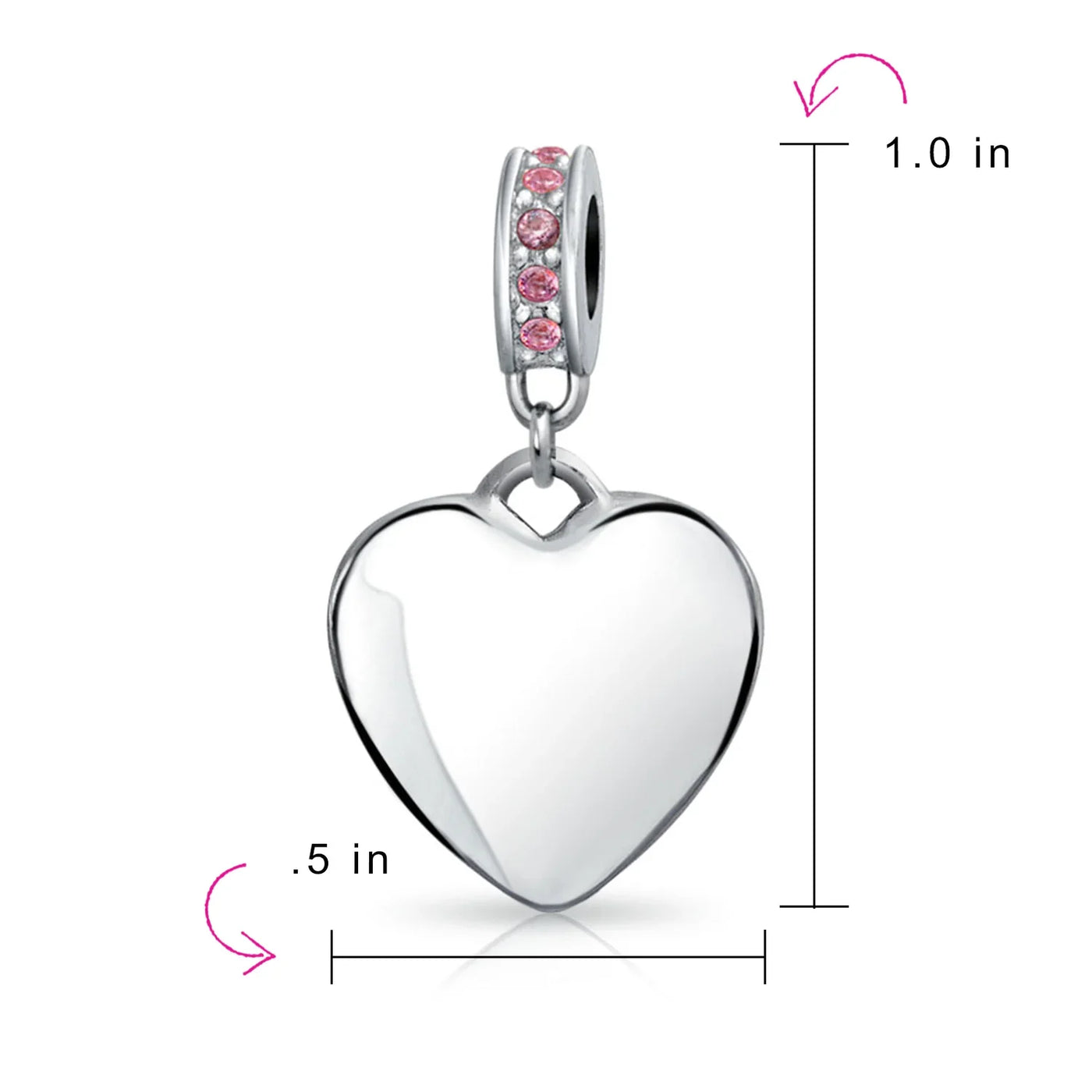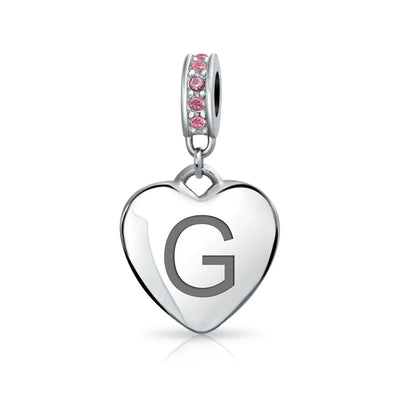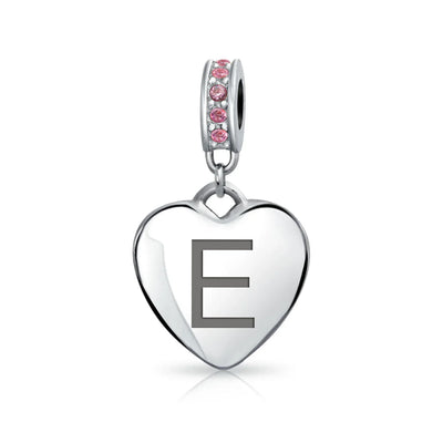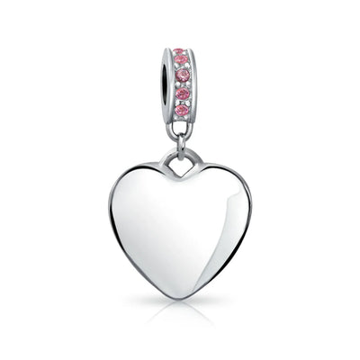 - Why not engrave names inspirational message, letters, numbers, date or coordinates. A beautifully sentimental gift, add a feminine touch to any bead story with this elegantly designed bead dangle charm. Featuring a lustrous heart motif with shimmering, simulated pink topaz, crystal accent on bail.