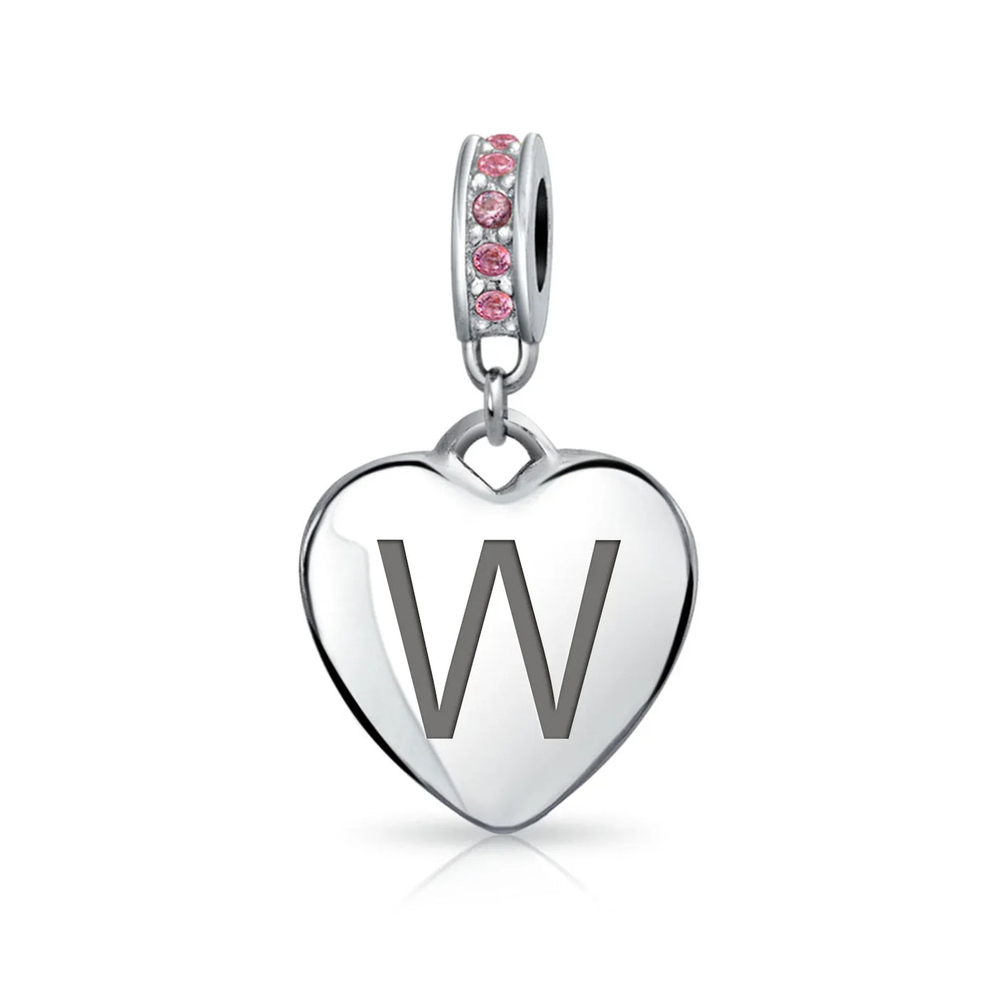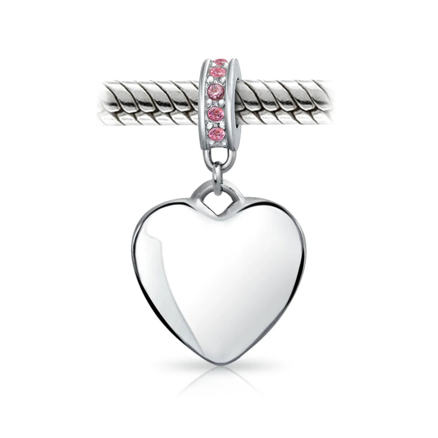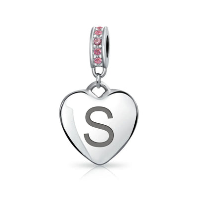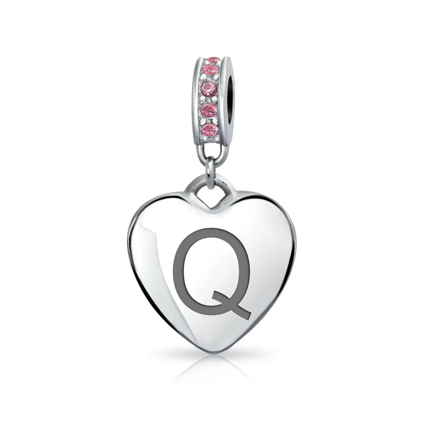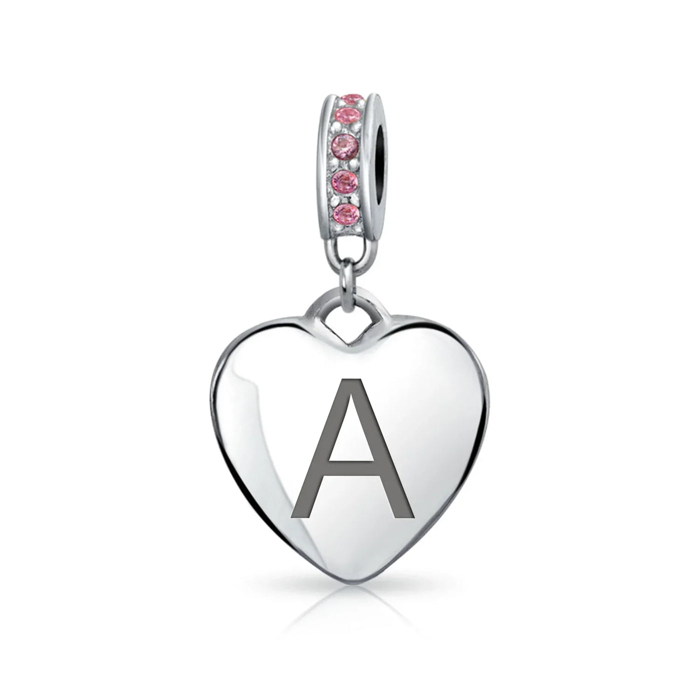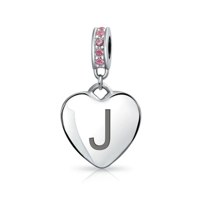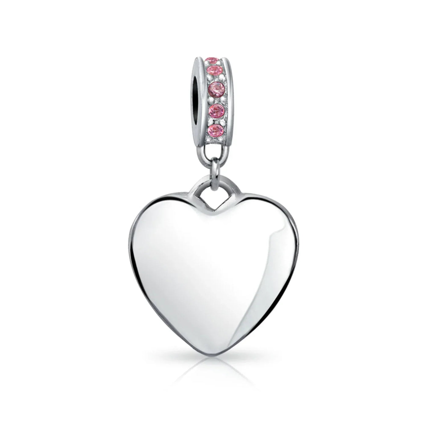 - Why not engrave names inspirational message, letters, numbers, date or coordinates. A beautifully sentimental gift, add a feminine touch to any bead story with this elegantly designed bead dangle charm. Featuring a lustrous heart motif with shimmering, simulated pink topaz, crystal accent on bail.