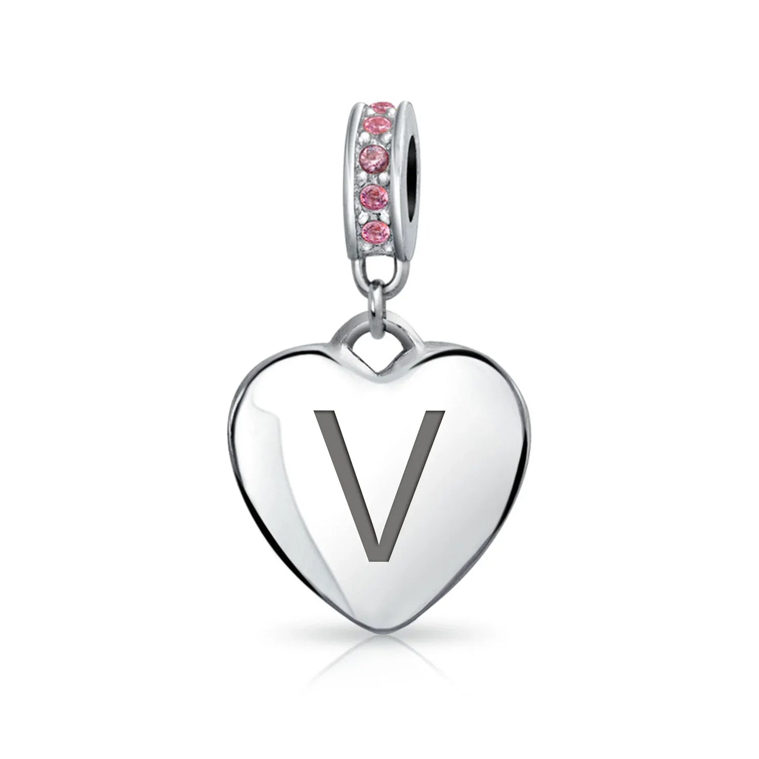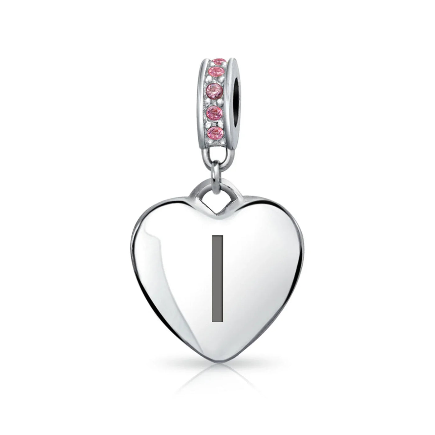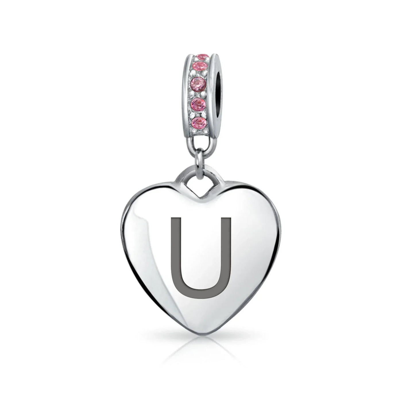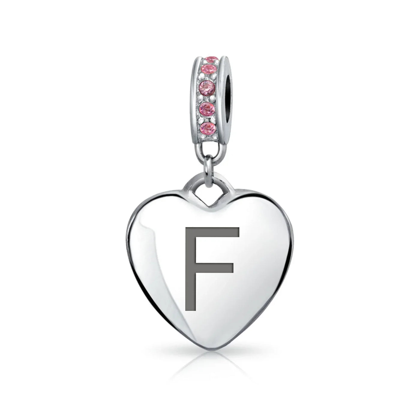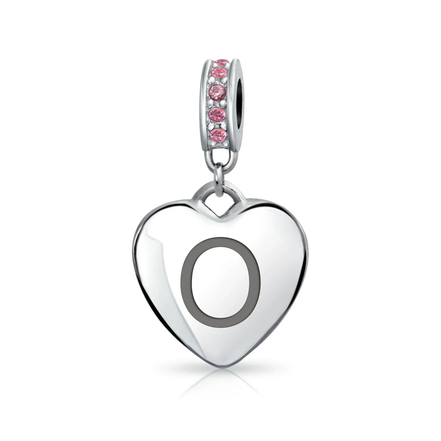 - Why not engrave names inspirational message, letters, numbers, date or coordinates. A beautifully sentimental gift, add a feminine touch to any bead story with this elegantly designed bead dangle charm. Featuring a lustrous heart motif with shimmering, simulated pink topaz, crystal accent on bail.