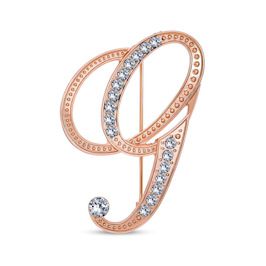 Large Statement ABC Crystal Letters Initial Scarf Lapel Pin Brooch Rose Gold Plated