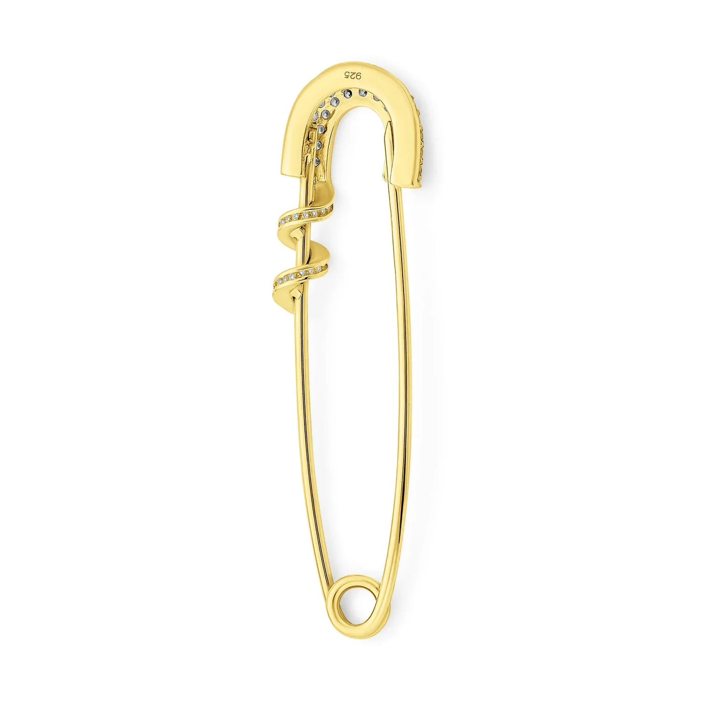 - Add sparkle with our pave cubic zirconia safety pin Brooch. Available in sterling silver, rose gold, or gold plated. Perfect for any coat, jacket, or sweater. Enhance your fashion jewelry collection with this versatile, glamorous Brooch. Don't miss out on this stunning safety pin accessory!