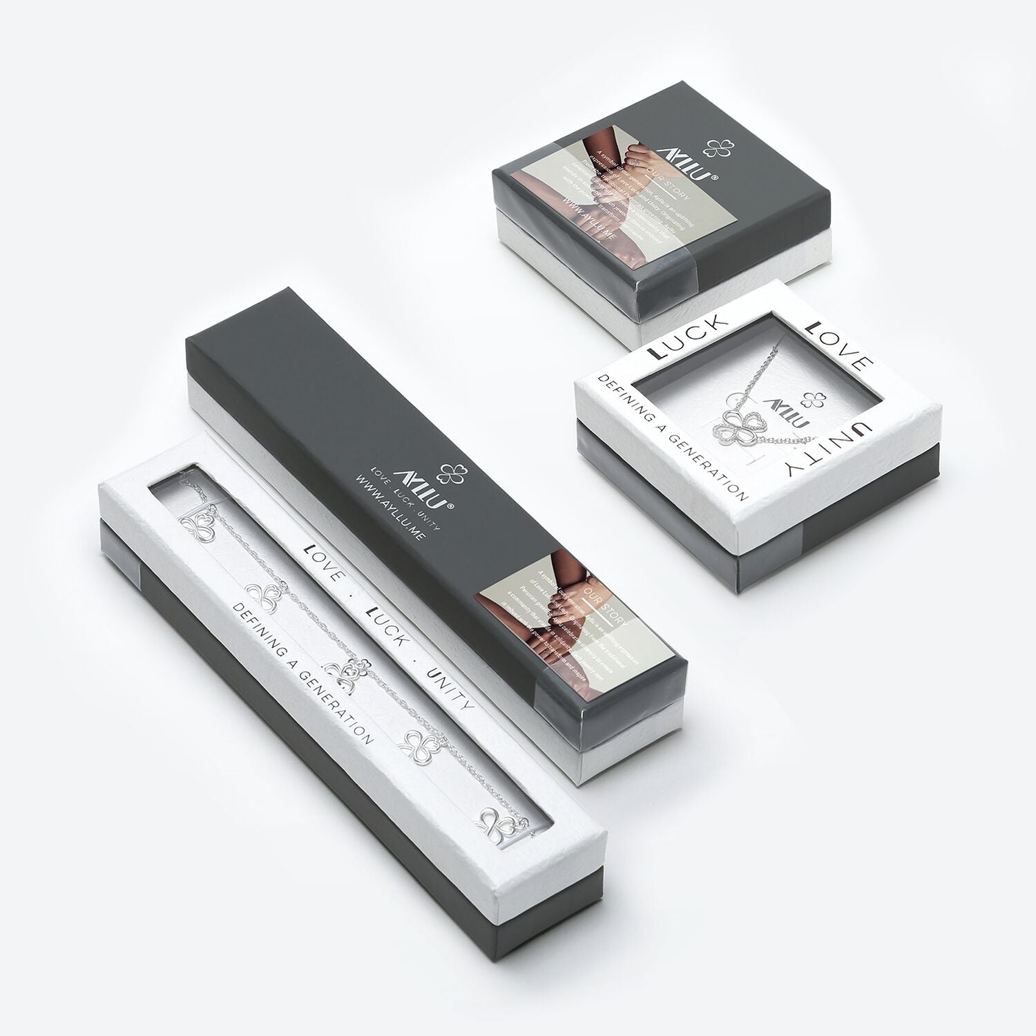 - Celebrate a new global community with this sterling silver pendant necklace, featuring a curved, open heart design. Two hearts join an infinity to form a clover, symbolizing AYLLU's ideals of love, luck, and unity. Comes in handcrafted gift boxes with a pamphlet sharing Ayllu's story.
