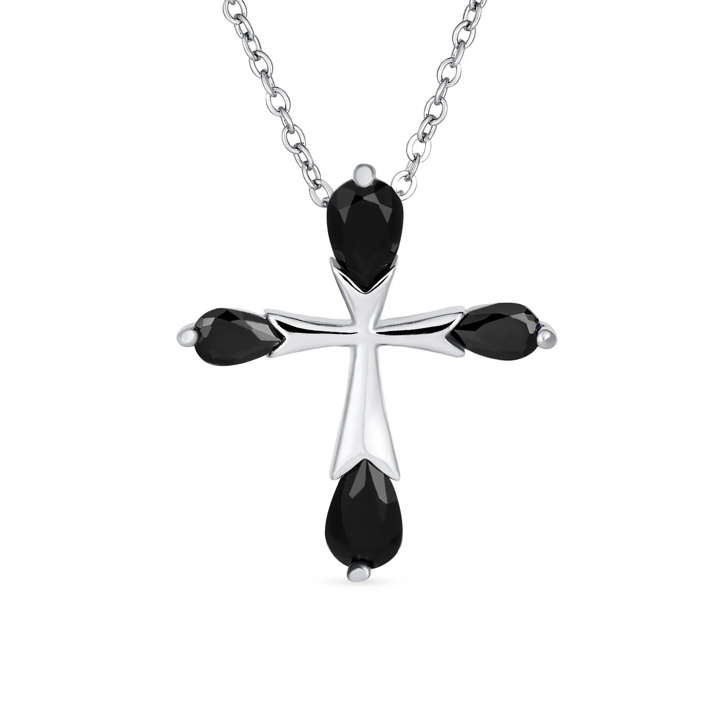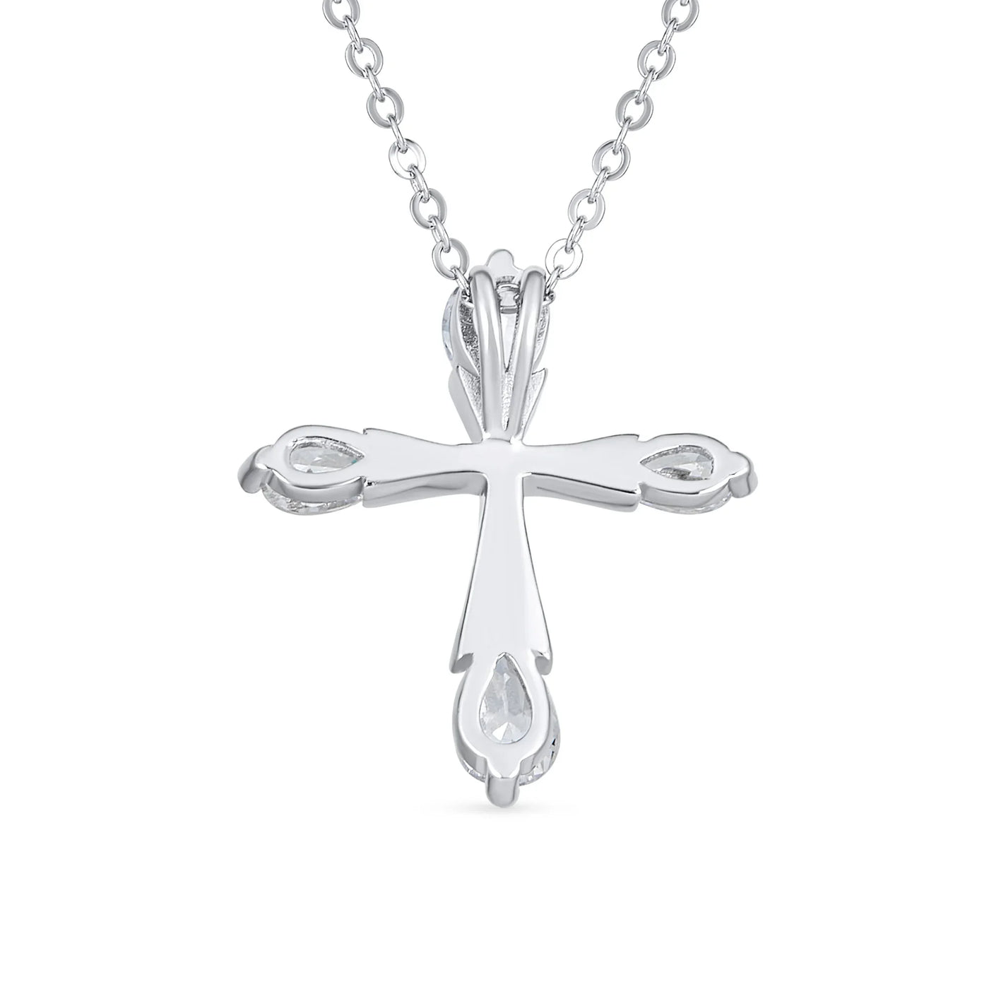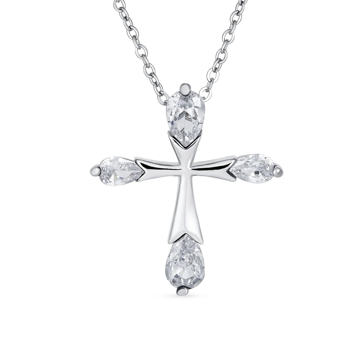- Carry the holy spirit when you wear this vintage style pear shape CZ cross. This eye catching teardrop tip cross pendant is sure to stand out, with sparkling sterling silver, chain included. This is the perfect Easter wear to recognize your faith and religious devotion in elegant style.
