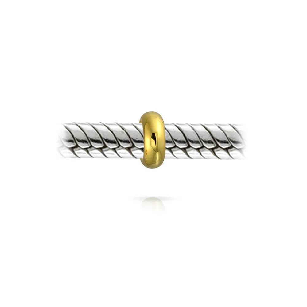 - If youre looking for an understated, yet glamorous spacer for your charm bracelet, then choose this chic, gold plated, sterling silver bead. Its rubber core makes it an ideal stopper bead for an easy, secure fit.