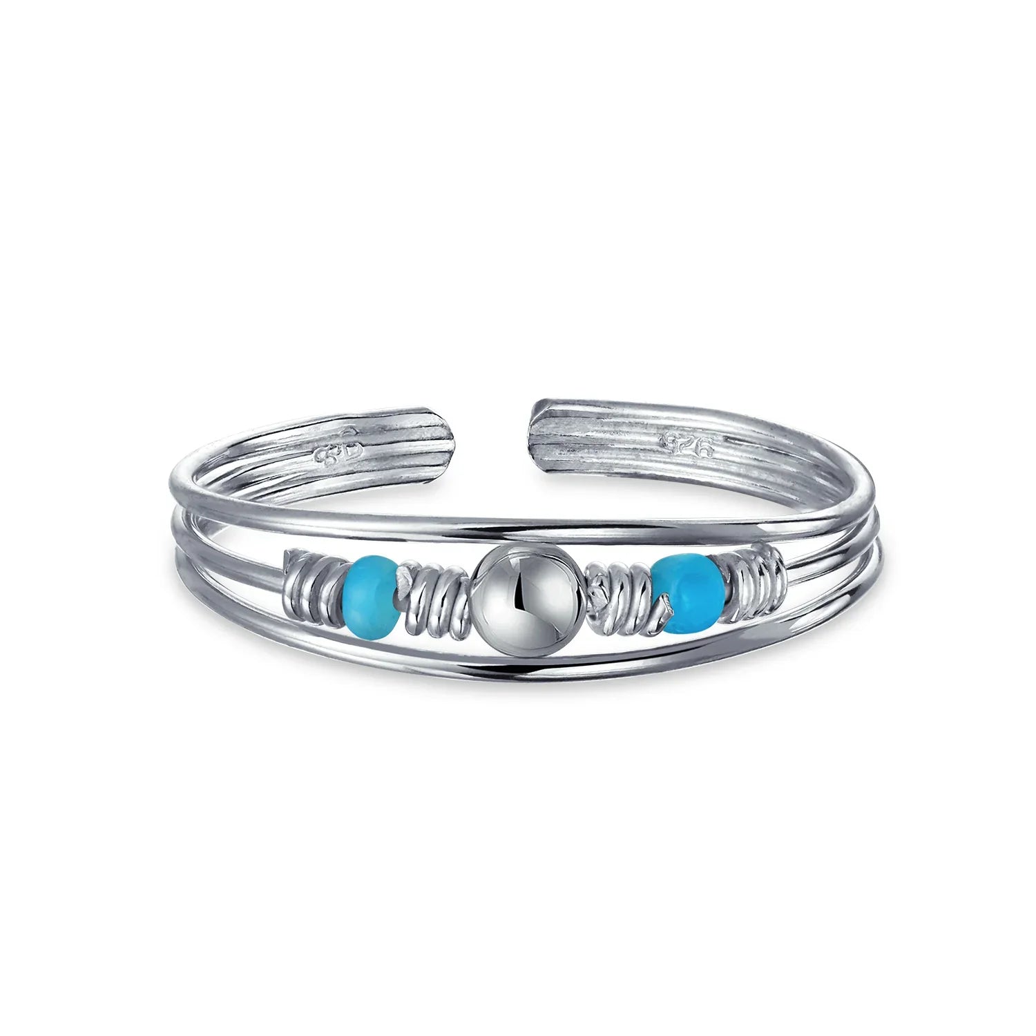- Add funky, eye-catching style to your look with a new sterling silver toe ring. Crafted from 925 sterling silver, it features two stabilized turquoise beads and a wrapped wire design. This December birthstone pinky ring is trendy and adjustable. Wear it as a mid-finger ring or above the knuckle. Unique and fun, this turquoise beaded toe ring will be your favorite accessory. Perfect for the beach or paired with other sterling silver midi rings for a Boho chic look. Stack it with other forefinger rings for a unique, trendy style. Embrace the latest fashion trend with this versatile ring.