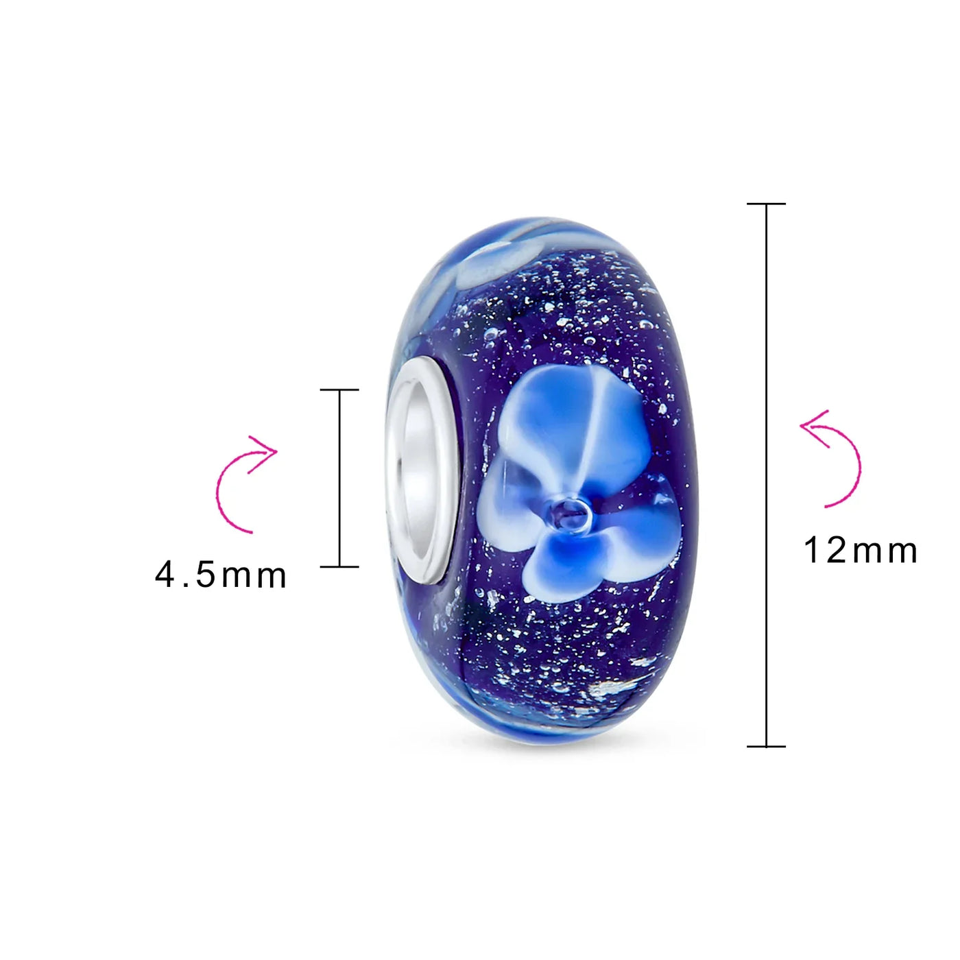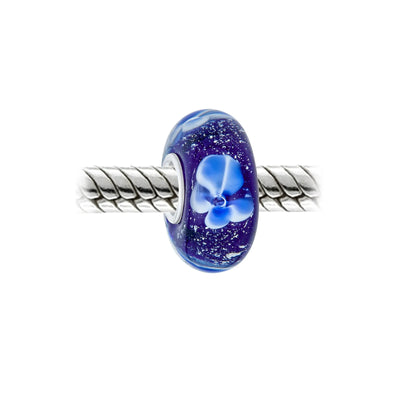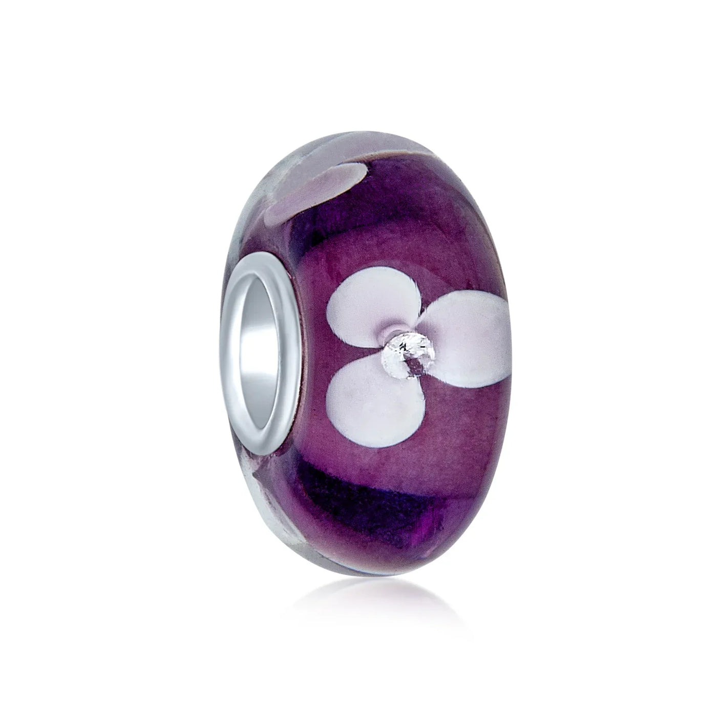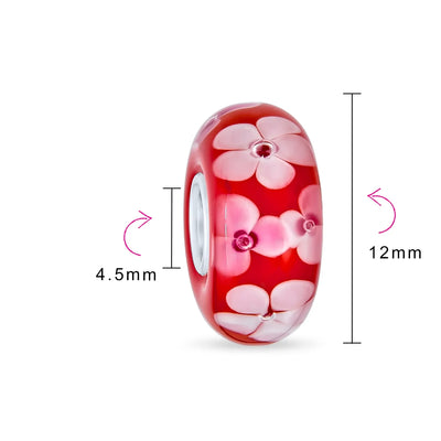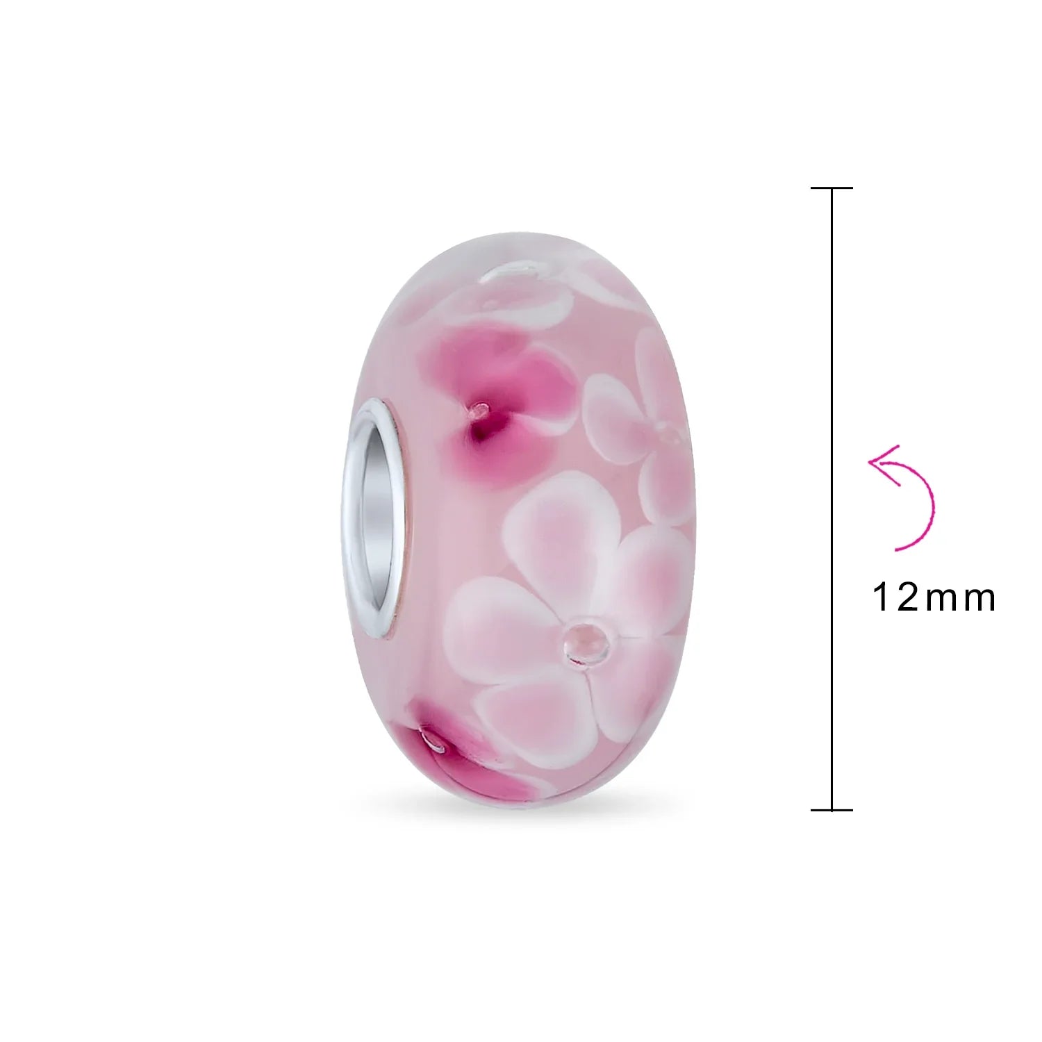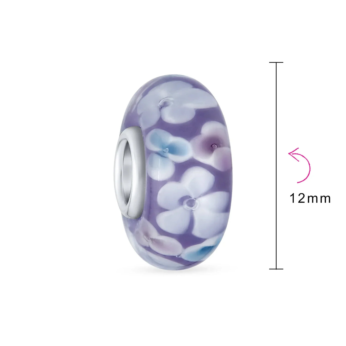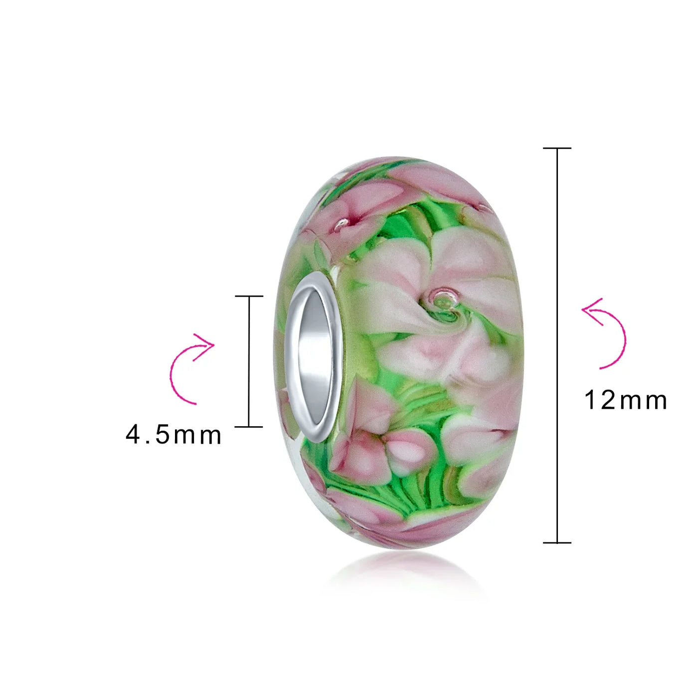 - Beautiful flowers adorn this Murano Glass Bead charm. Compatible with European style charm bracelets, 3mm snake chains, and cords. This stylish flower bead will be the centerpiece of your bracelet, enhancing your favorite charms and beads. Perfect for adding a touch of spring to your look.
