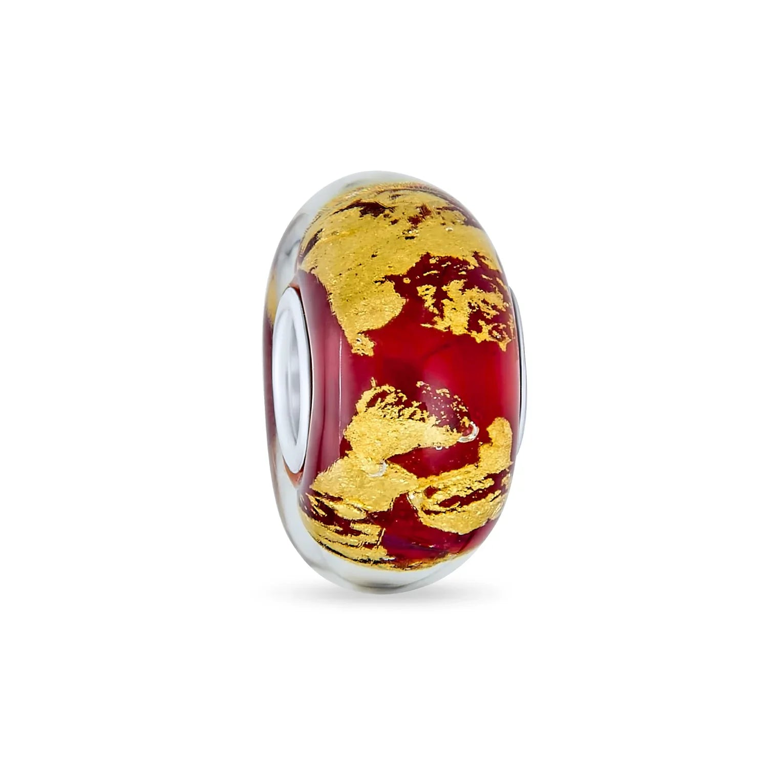 Murano Glass Charm Bead Red Green Purple Blue Gold Foil for European Bracelet