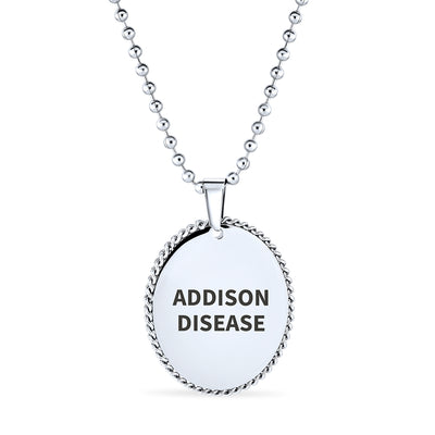 - Customize it or Pre-graved with Addison Disease, Blood Thinner, Diabetes On Insulin, DNR-Do Not Resuscitate, Pacemaker, Penicillin, Type 1 Diabetes, Type 2 Diabetes identify in case of a medical emergency. Long Shot bead chain silver tone dog tag with a red caduceus the traditional symbol of medical at quick glance.