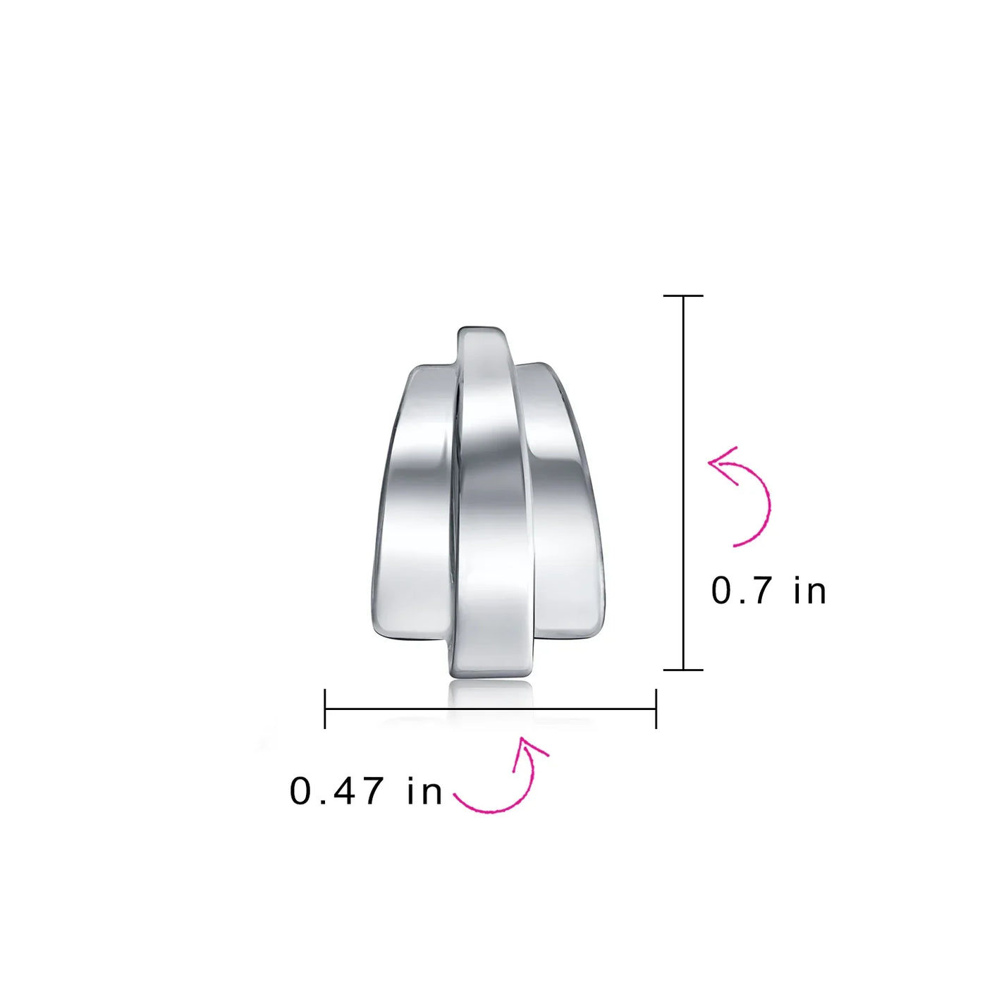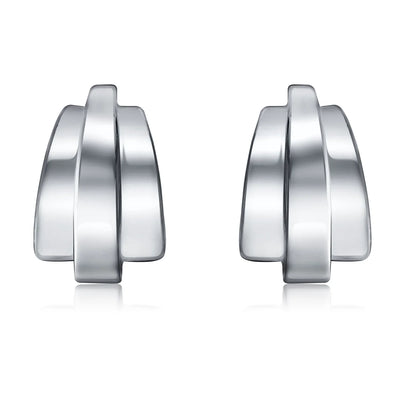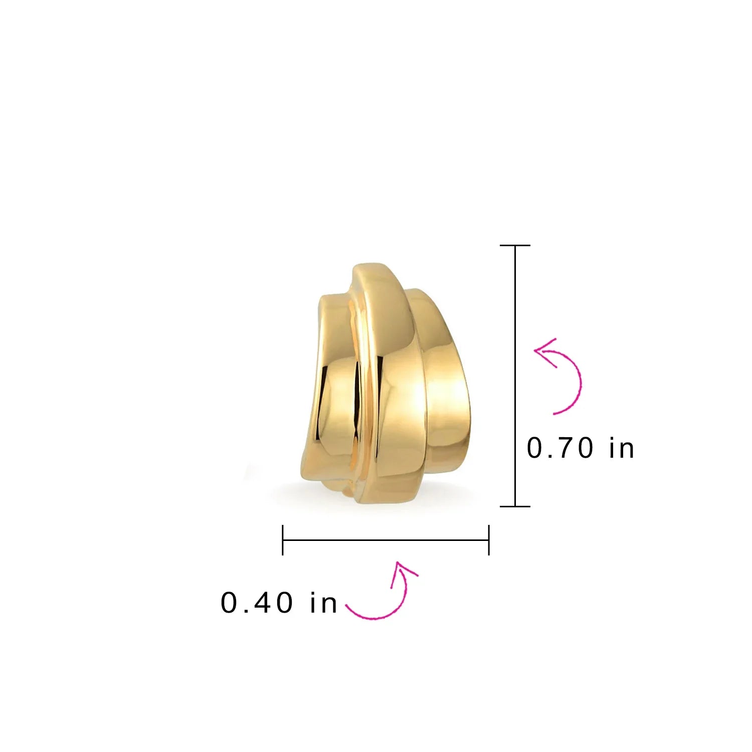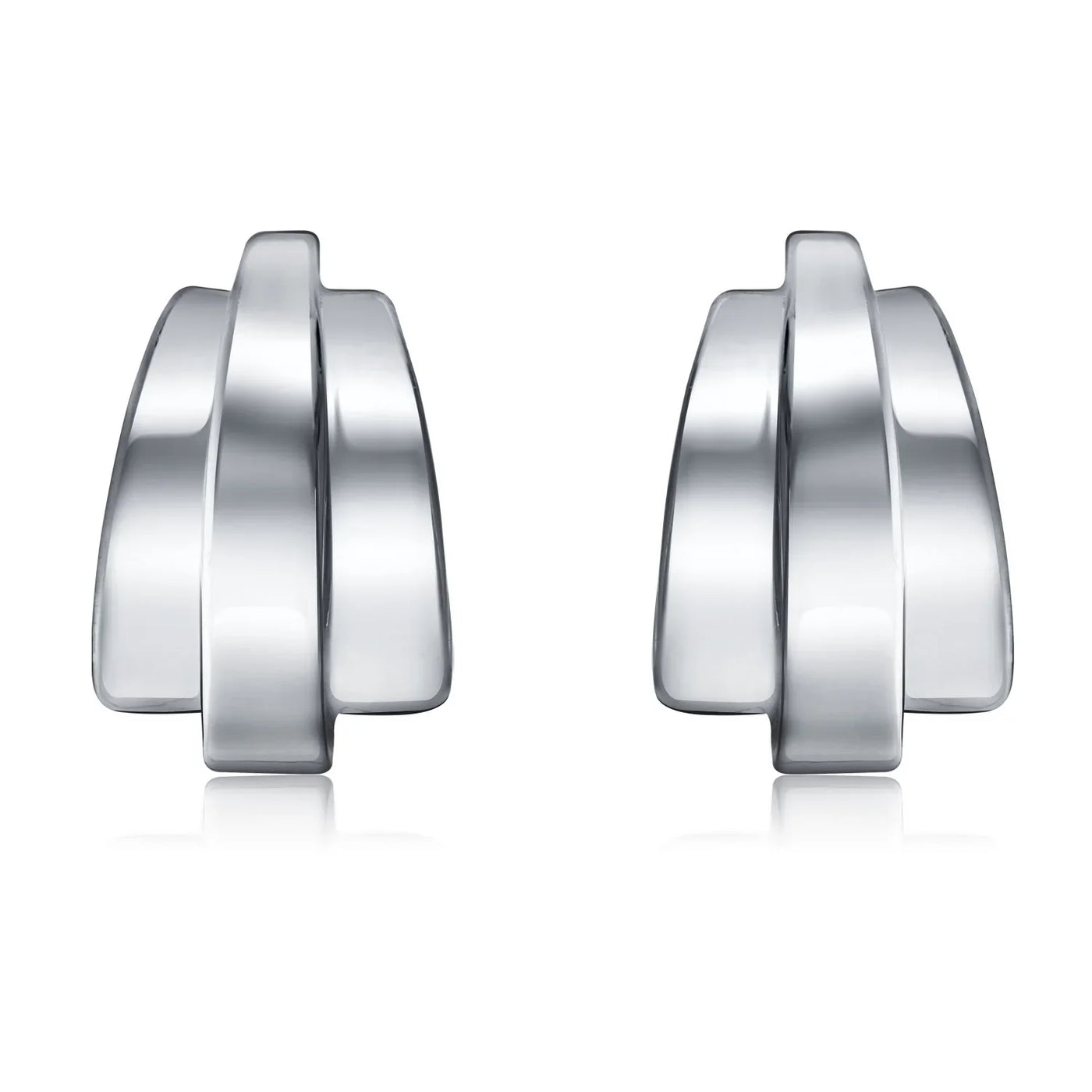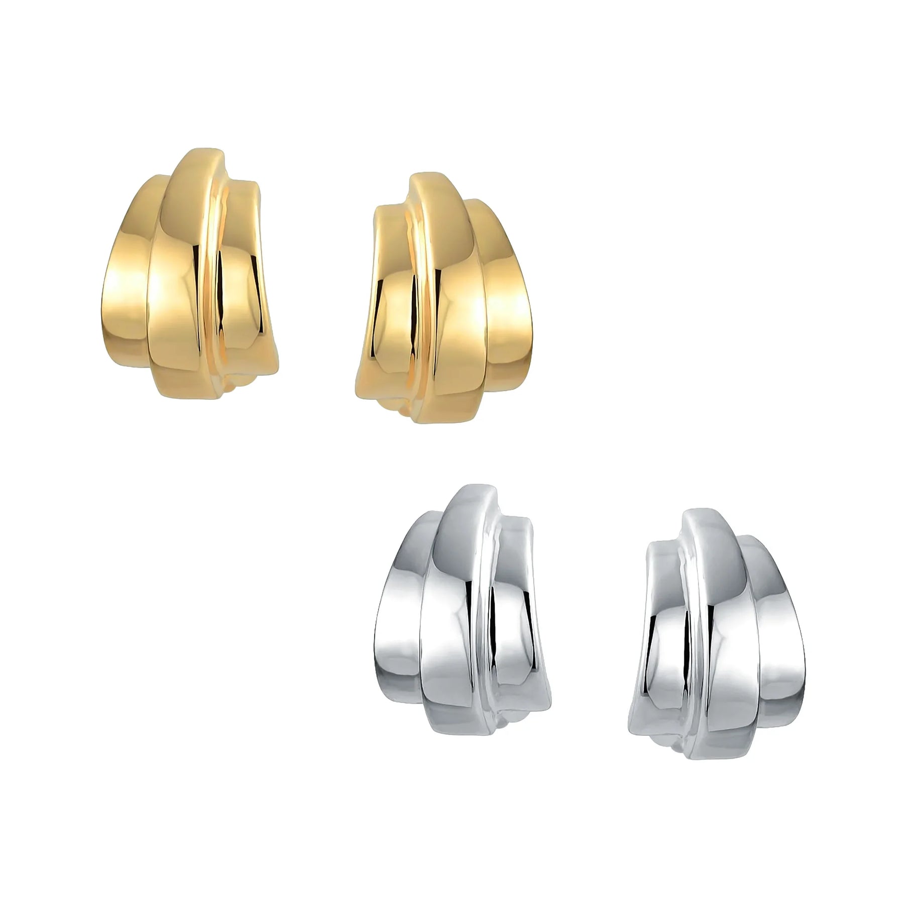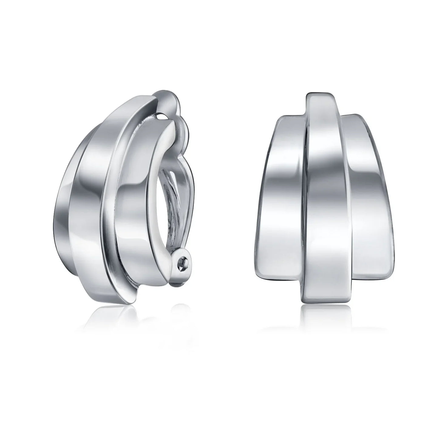 - Enhance your style with this set of 2 elegantly refined Silver & Yellow Gold modern clip-on, half hoop earrings, specially designed for non-pierced ears. These earrings are guaranteed to add a dynamic flair to any ensemble, thanks to their unique geometric stripes of gold plated or rhodium plated material. The striking 3D modern design will surely make a statement.