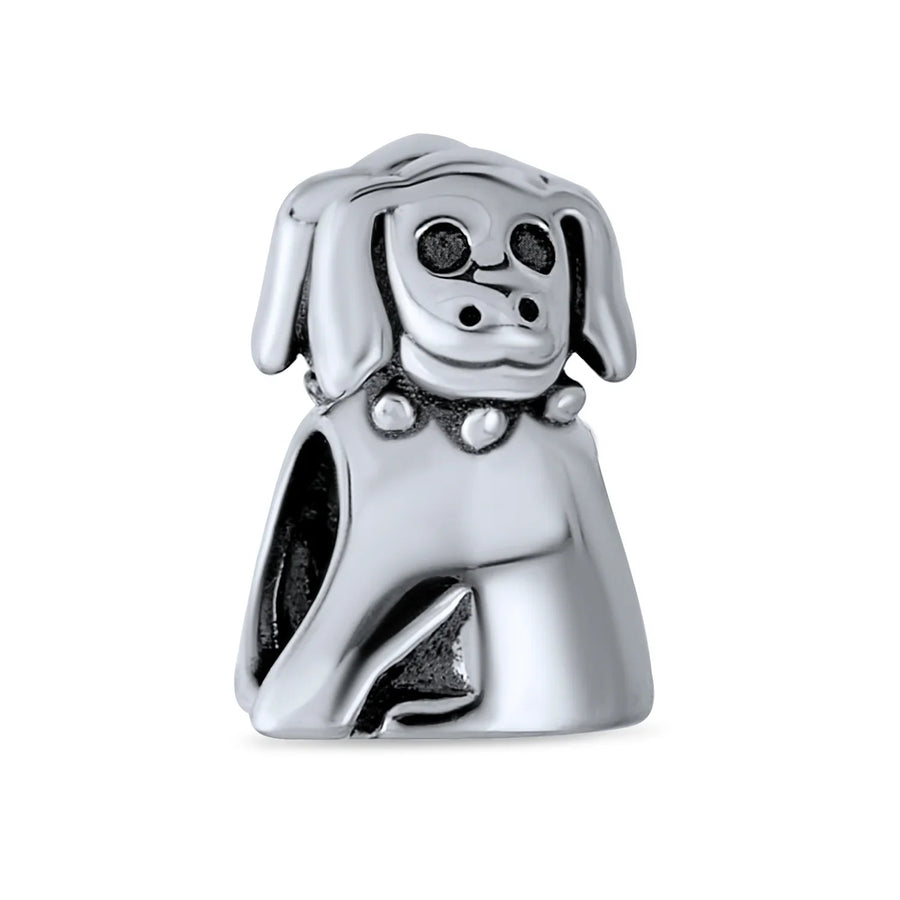 - Our adorable sterling silver puppy dog bead is perfect for any dog jewelry collection. This two-sided charm is crafted from 925 sterling silver. Add a touch of puppy love to your bracelet with this lovable animal bead.