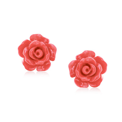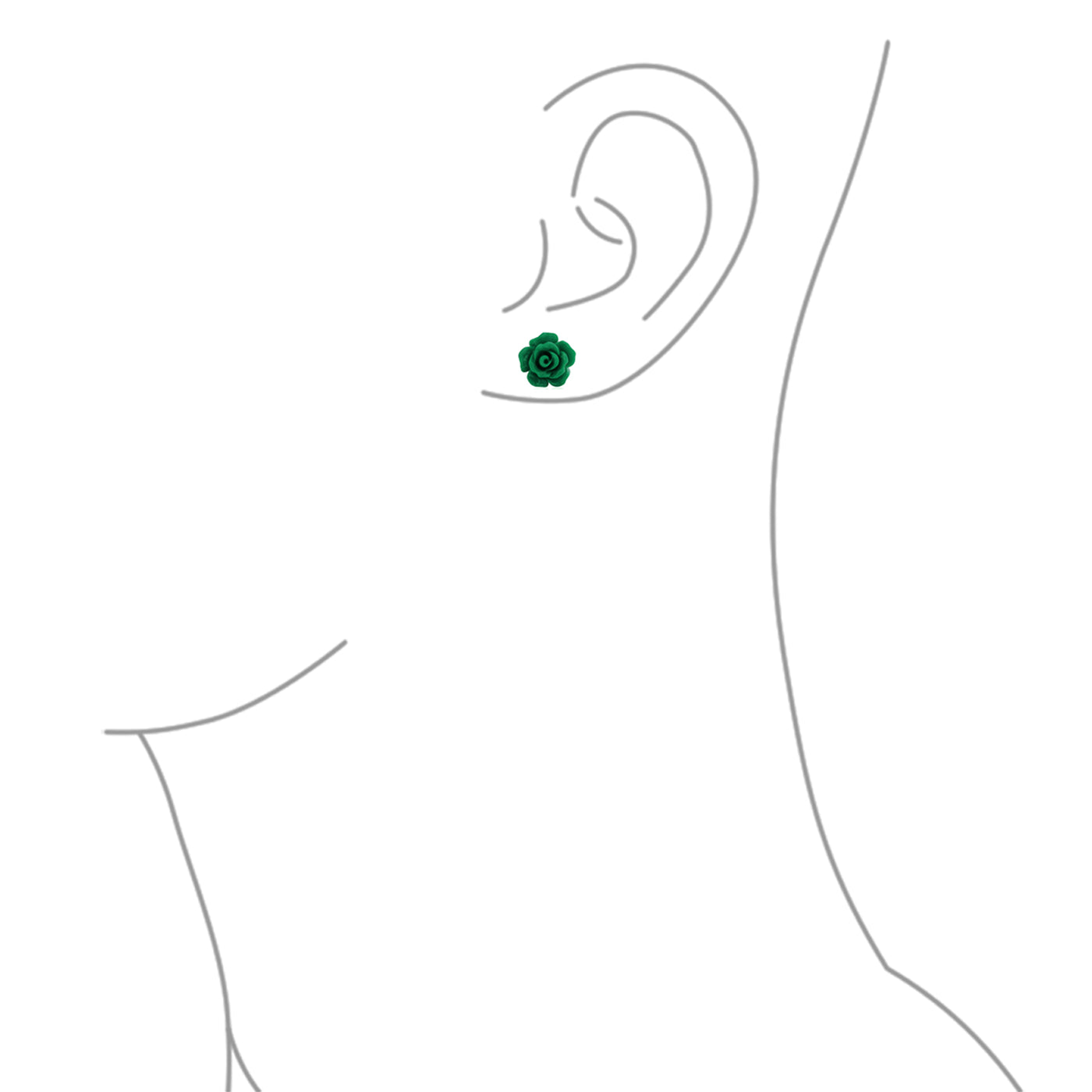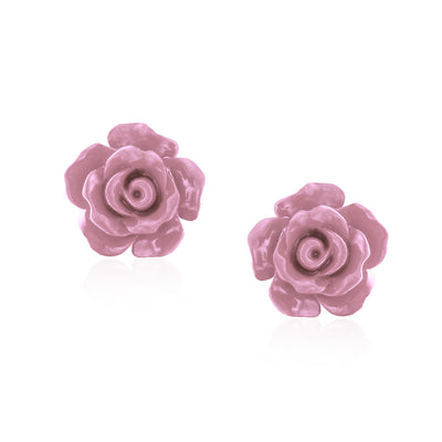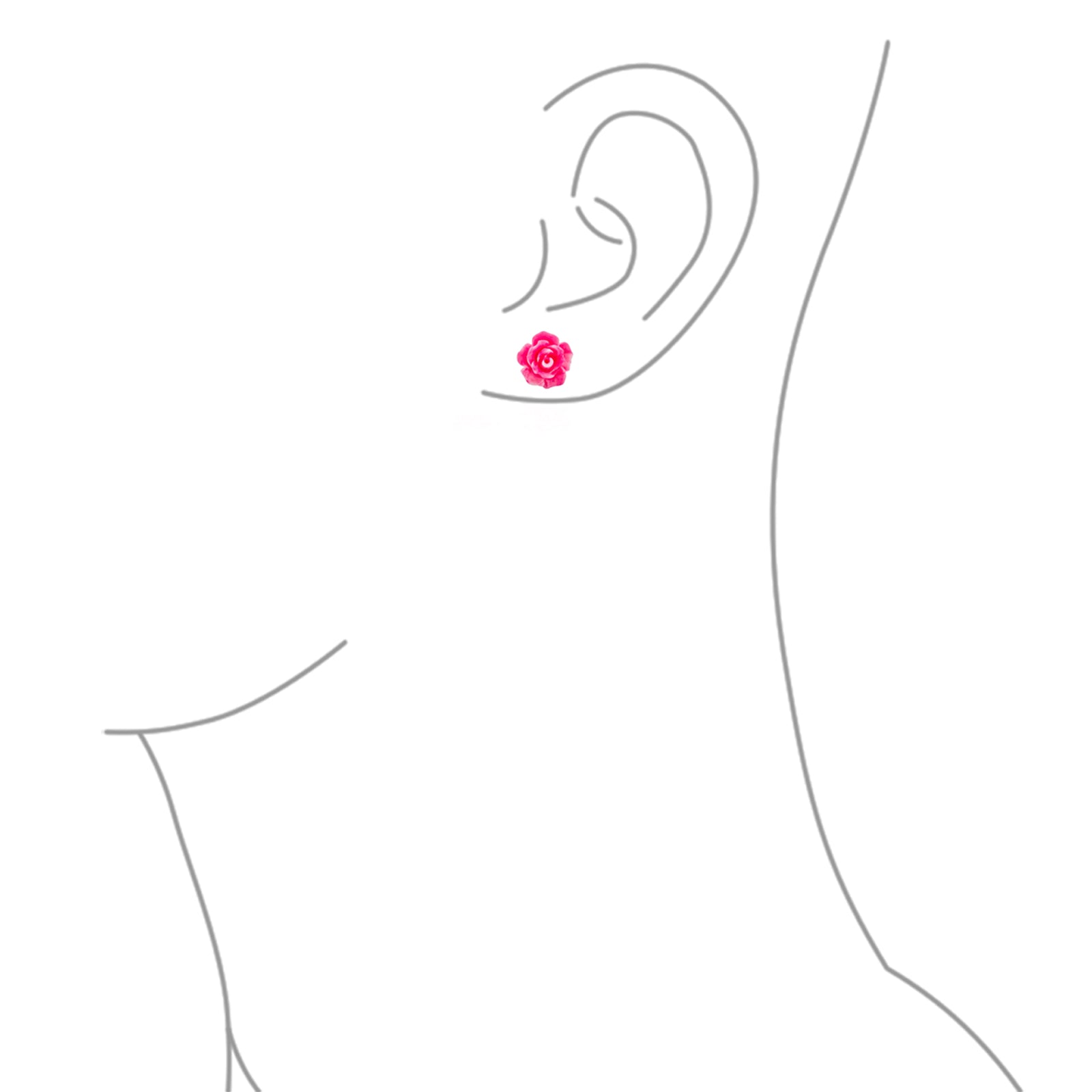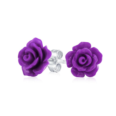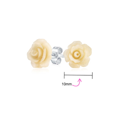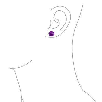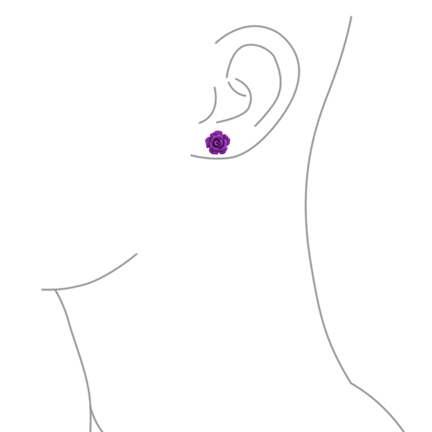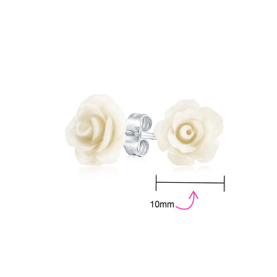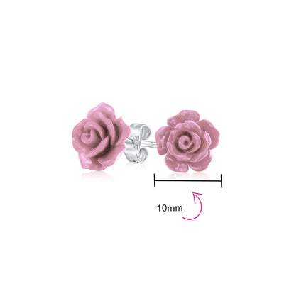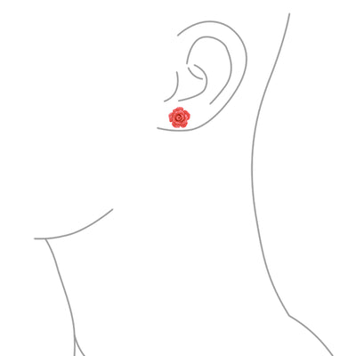 Romantic 3D Carved Rose Flower Post Stud Earrings Multi Colors 10MM Lightweight