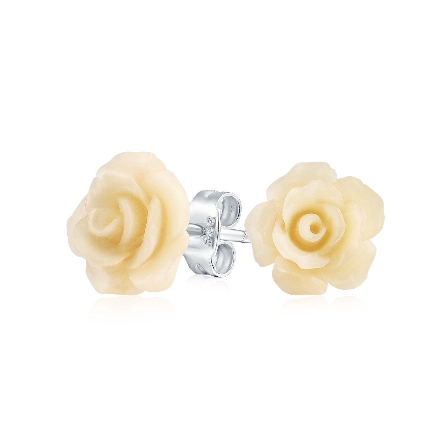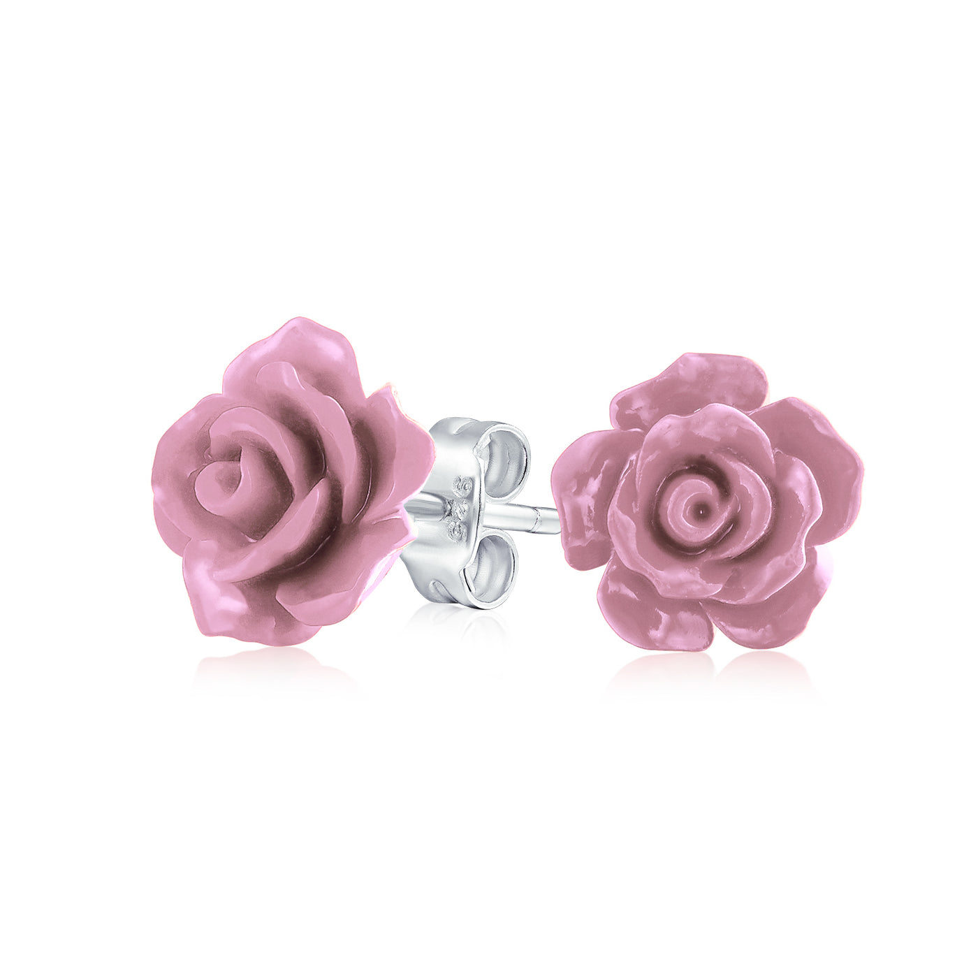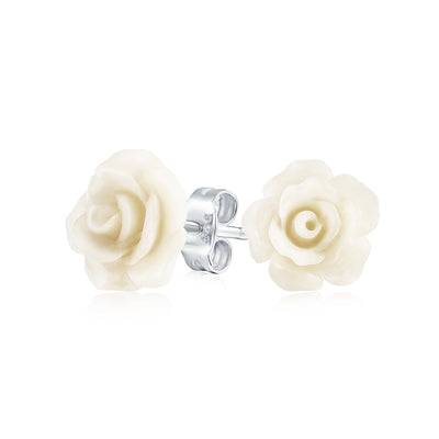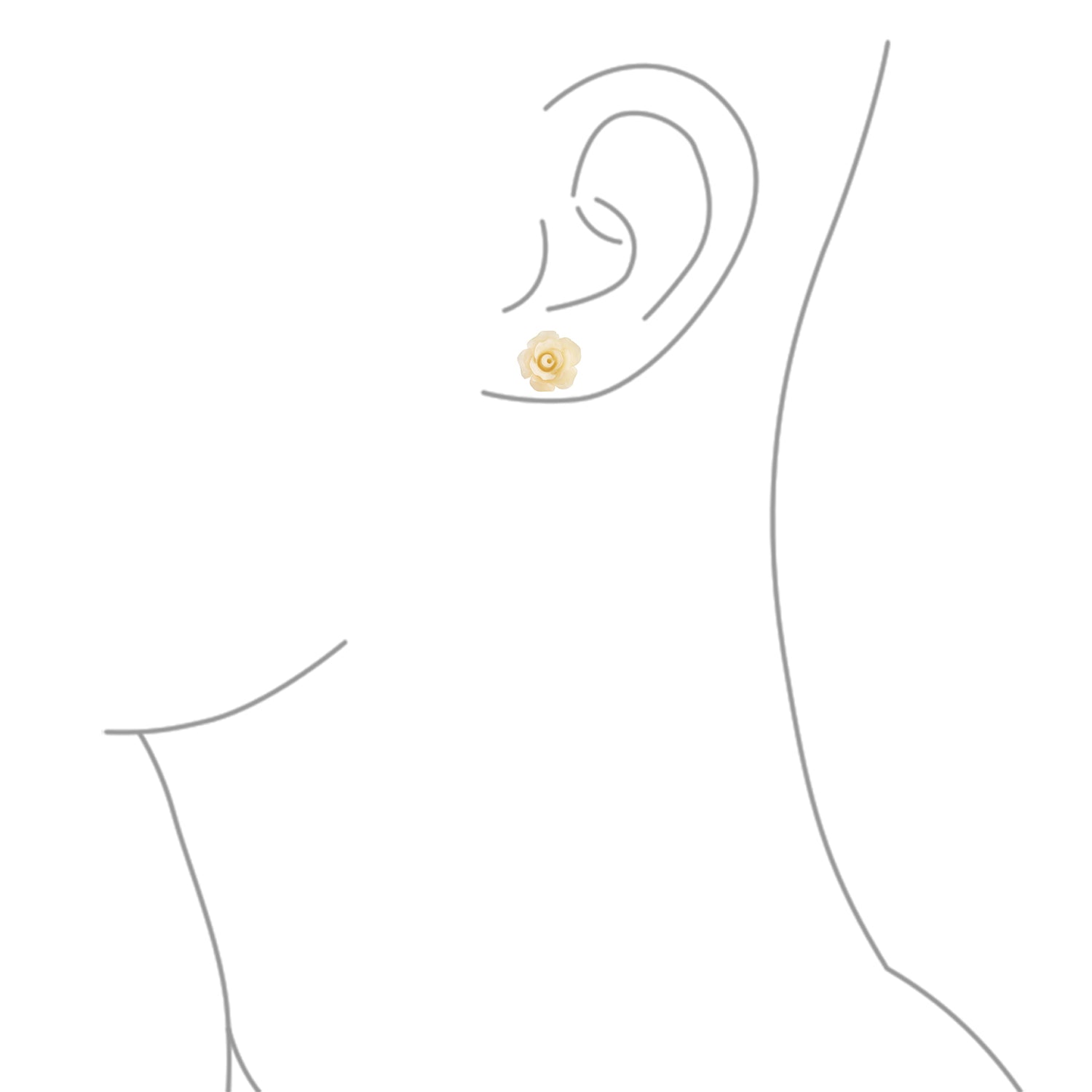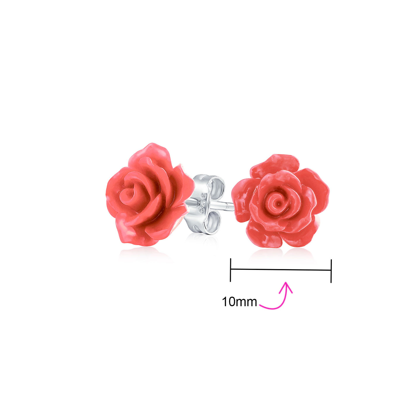 Romantic 3D Carved Rose Flower Post Stud Earrings Multi Colors 10MM Lightweight