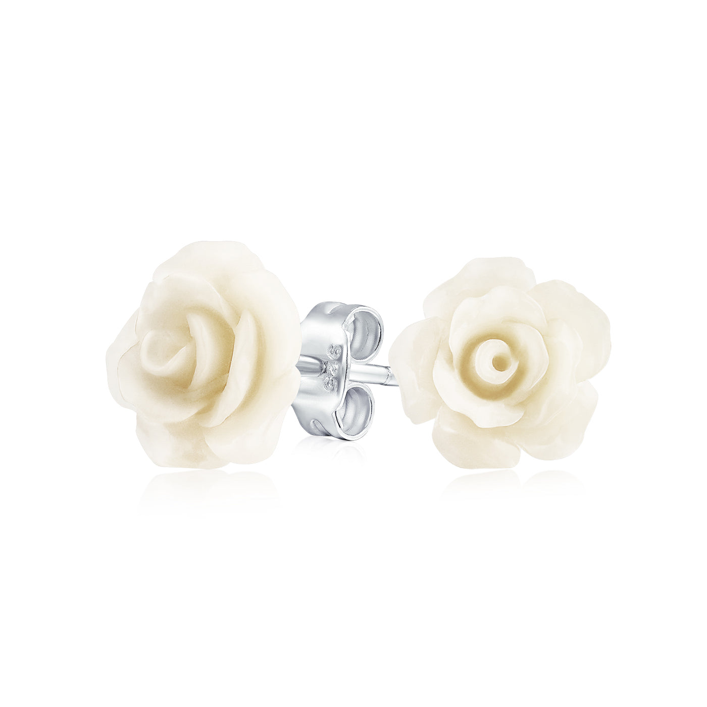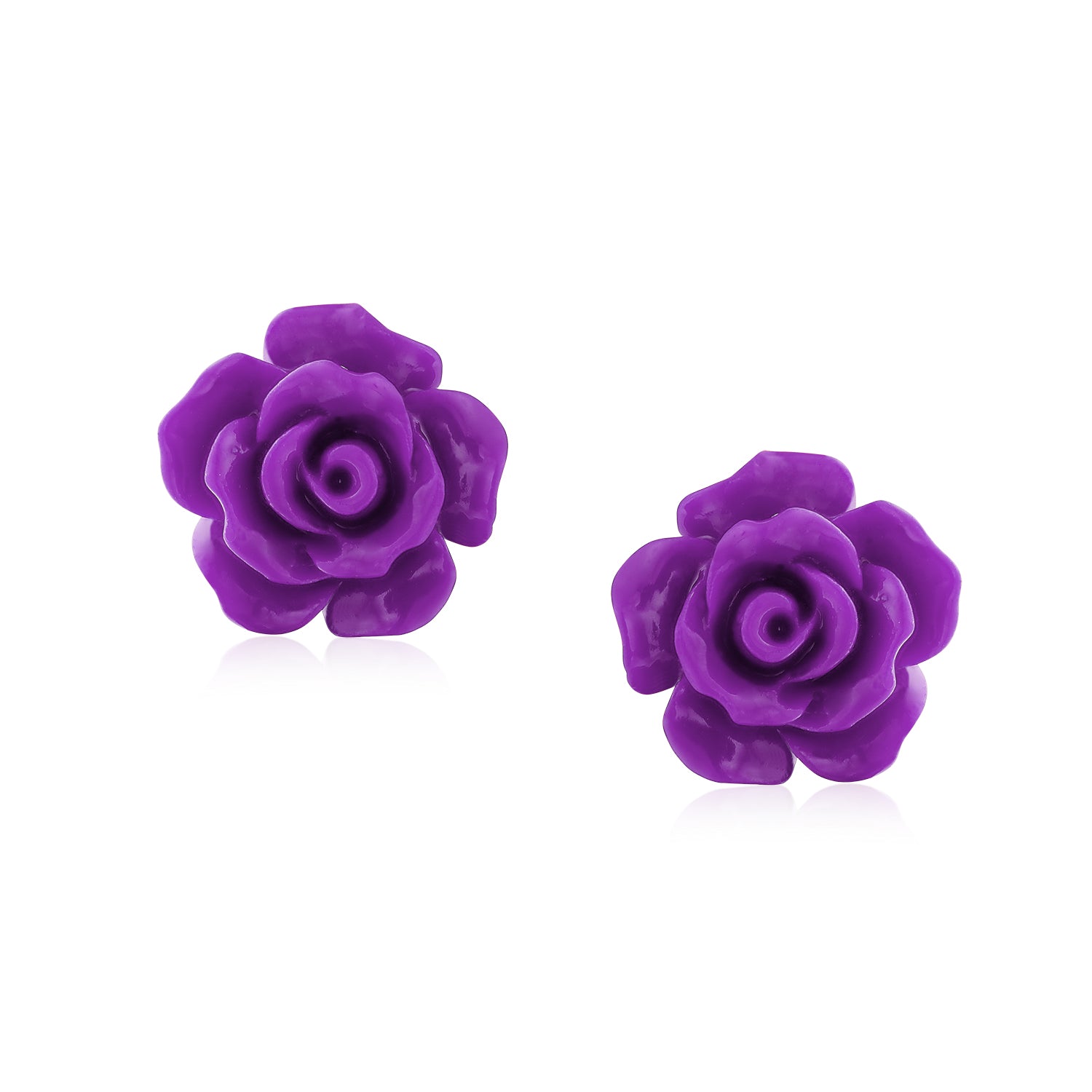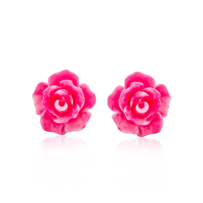 • Enhance your style with these exquisite floral stud earrings. Crafted with precision, they feature vibrant resin roses and a chic silver-plated finish. Perfect for any outfit, these earrings add timeless femininity and springtime charm. A must-have accessory for fashion-forward individuals.