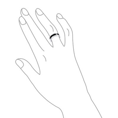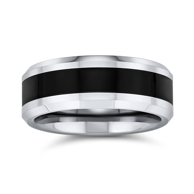 Simple Two Tone Black Center Titanium Band Ring Silver Tone Beveled Edge 8MM