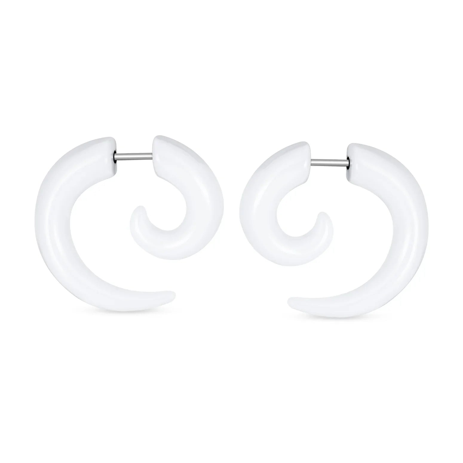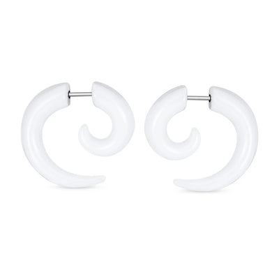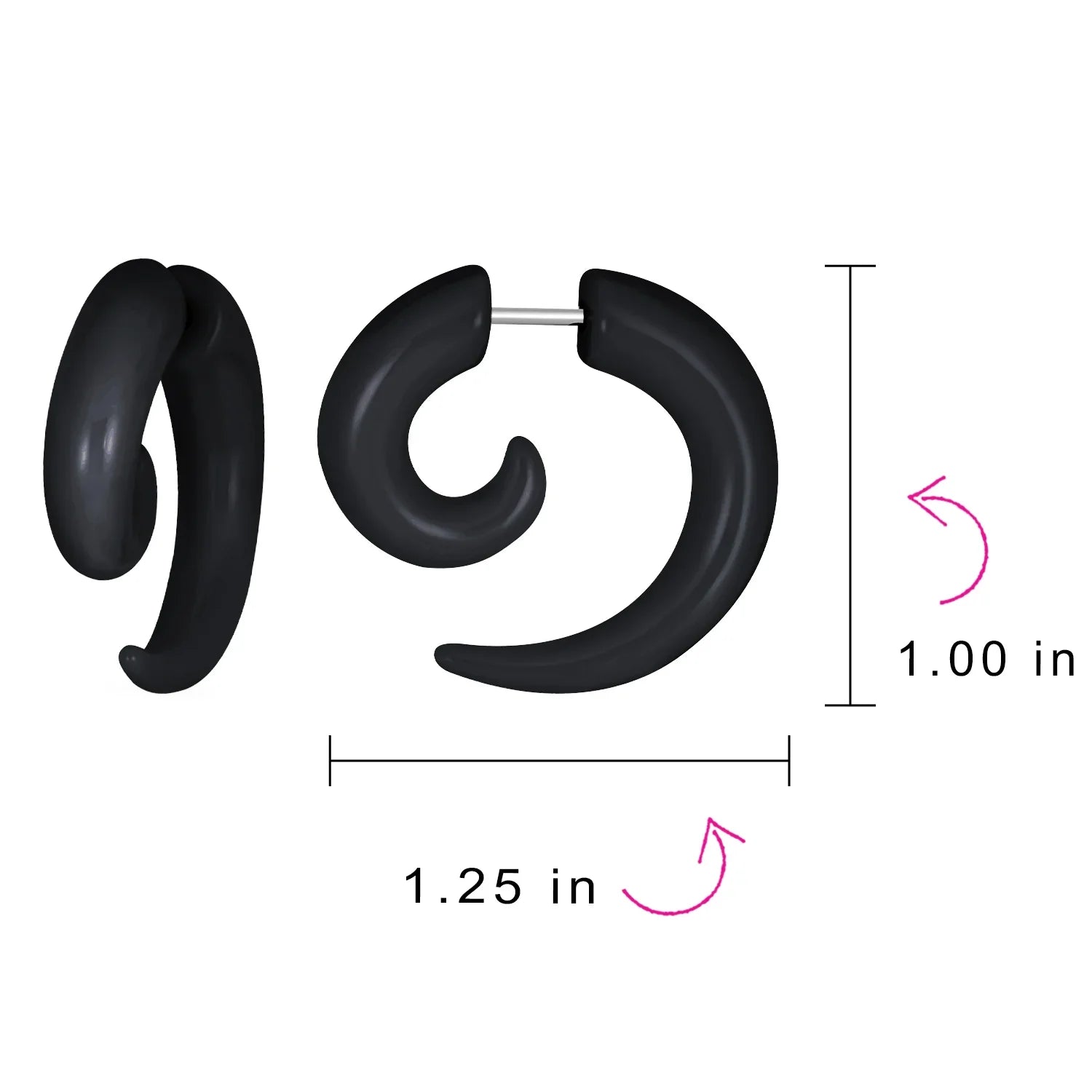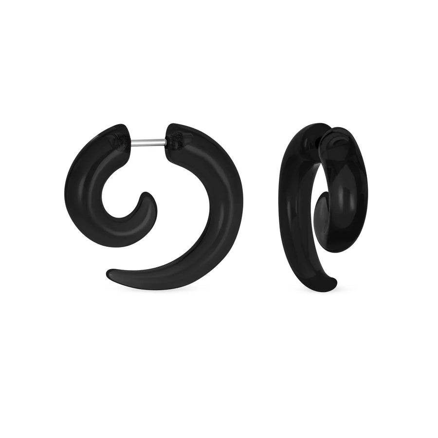 - Join the tribe with our stylish tribal cheater plugs. These sleek body jewelry pieces feature a classic tribal design. The 16 gauge bar ensures easy wear. Made with hypoallergenic stainless steel, they're safe for everyone. Polished black acrylic spirals on each end add flair. Perfect with band shirts and black jeans. Lightweight and comfortable, these black tribal tapers are a must-have. Get your pair today!