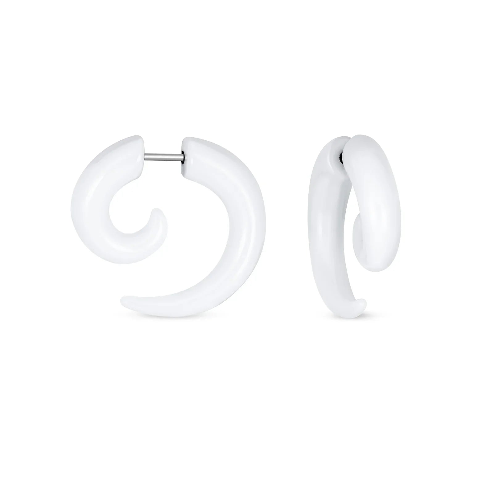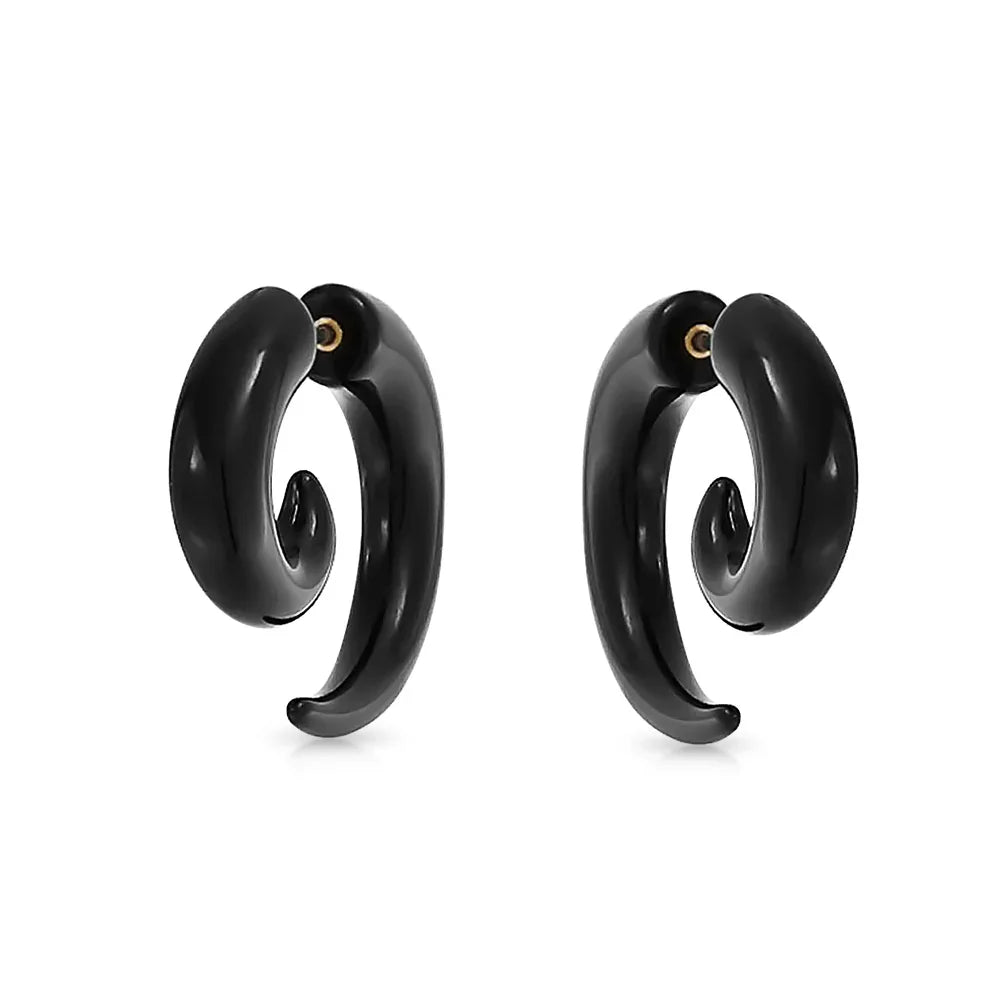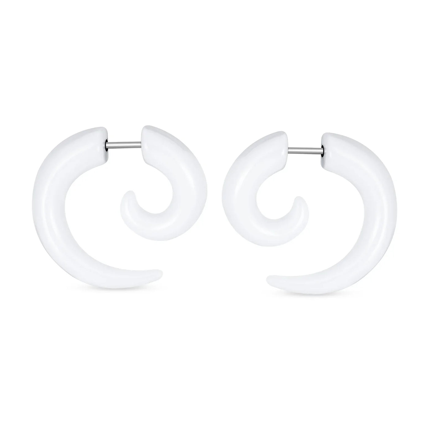 - Join the tribe with our stylish tribal cheater plugs. These sleek body jewelry pieces feature a classic tribal design. The 16 gauge bar ensures easy wear. Made with hypoallergenic stainless steel, they're safe for everyone. Polished black acrylic spirals on each end add flair. Perfect with band shirts and black jeans. Lightweight and comfortable, these black tribal tapers are a must-have. Get your pair today!