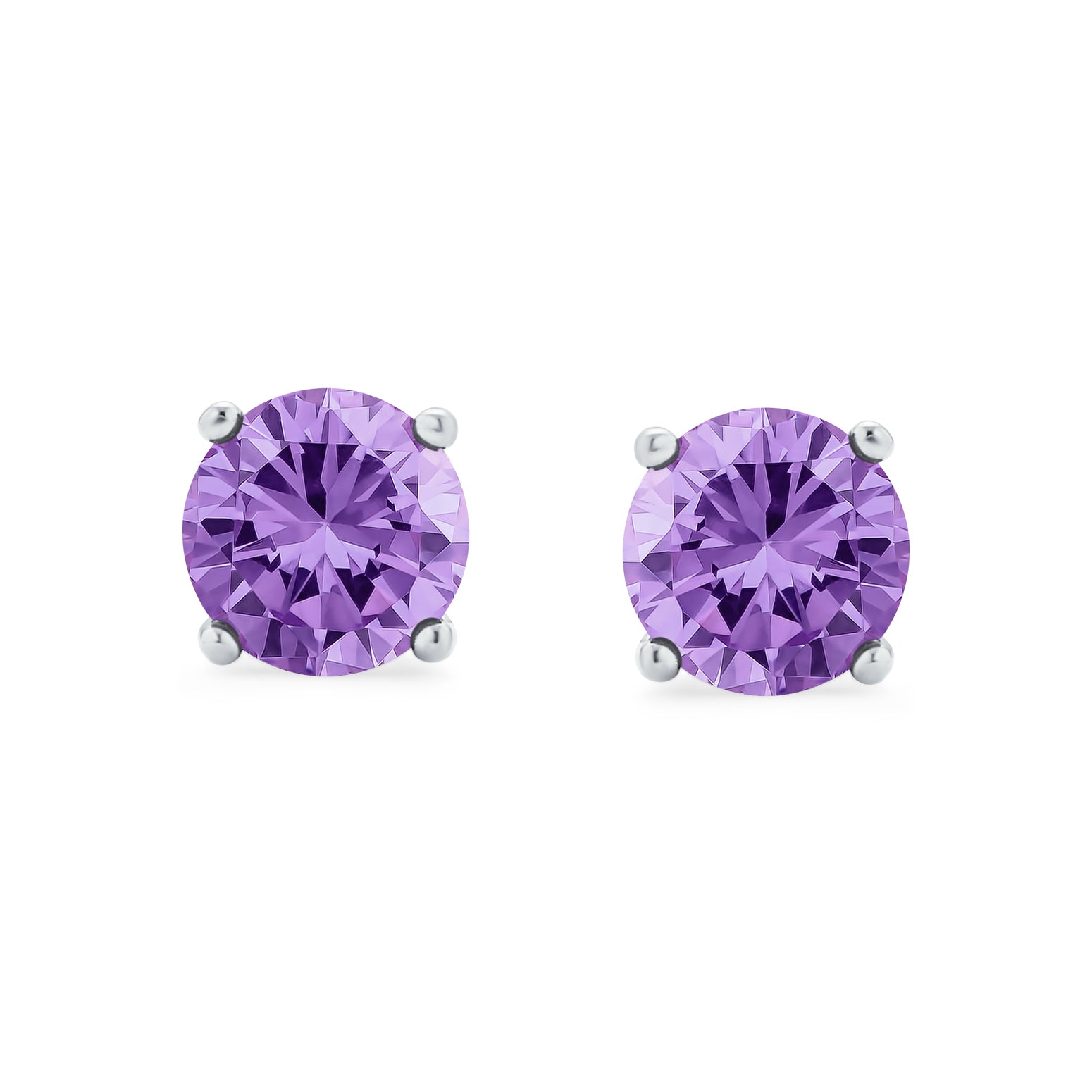 - Elevate your style with these royal purple stud earrings. Crafted from .925 sterling silver, they feature round Simulated Amethyst cubic zirconia. Perfect February birthstone gift. Add a touch of elegance and color to any outfit. Order now for yourself and a friend!