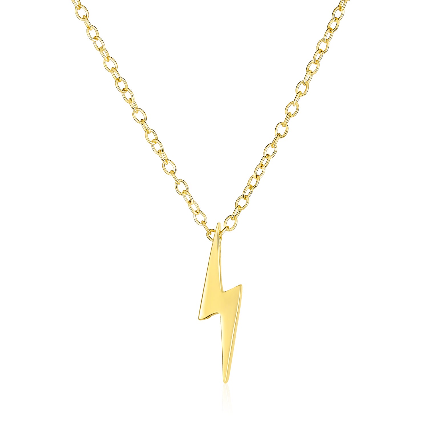 • Elevate your style with our gold plated lightning bolt necklace. This modern piece adds glam to any outfit. Crafted with high-quality Electro coated .925 Sterling Silver, it enhances casual looks effortlessly. Layer with other contemporary jewelry for a striking effect.
