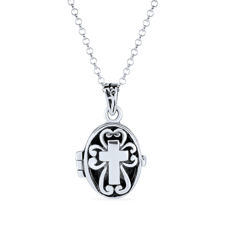 Religious Cross Prayer Box Locket Necklace Pendant Holder Sterling Silver