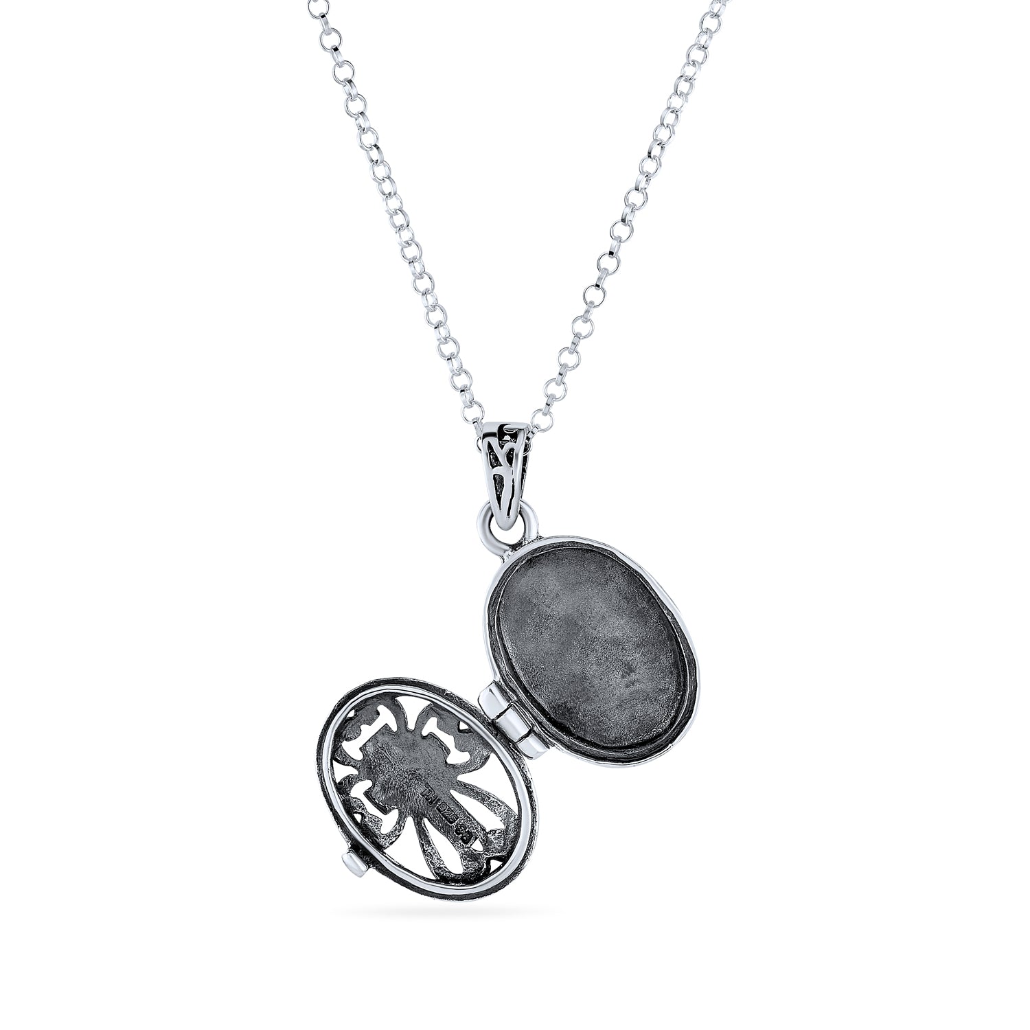 • Keeper of secrets and wishes, this .925 Sterling Silver prayer box pendant is a cherished keepsake. Antique Styled .925 Sterling Silver poison locket with chic cutout cross design and Celtic detailing. Ideal Christmas or Easter gift, this Vintage Style cross pendant keeps loved ones close to your heart.