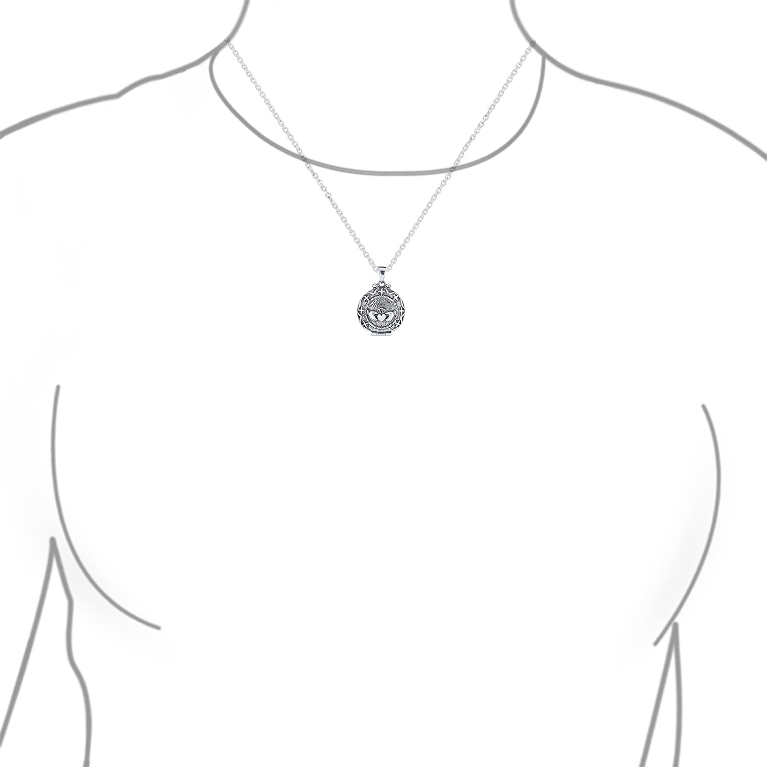 - Celebrate special occasions with a meaningful, traditional gift. Our Claddagh locket cross pendant features a graceful cross border design. The .925 Sterling Silver locket's back cover showcases a striking filigree heart design. This vintage-style locket is steeped in tradition and symbolism. The Claddagh symbolizes love, friendship, and loyalty. Two hands clasp a heart, surmounted by a crown. Perfect for embracing Irish heritage in style. Give this stunning Celtic jewelry to someone you love. Chain included.