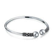 - Enhance your style with a touch of enchanting nautical charm by wearing this delightful .925 sterling silver bangle bracelet. Featuring a captivating starfish motif at its center, it dazzles with stunning, color-changing synthetic blue opal and intricate etched detailing.
