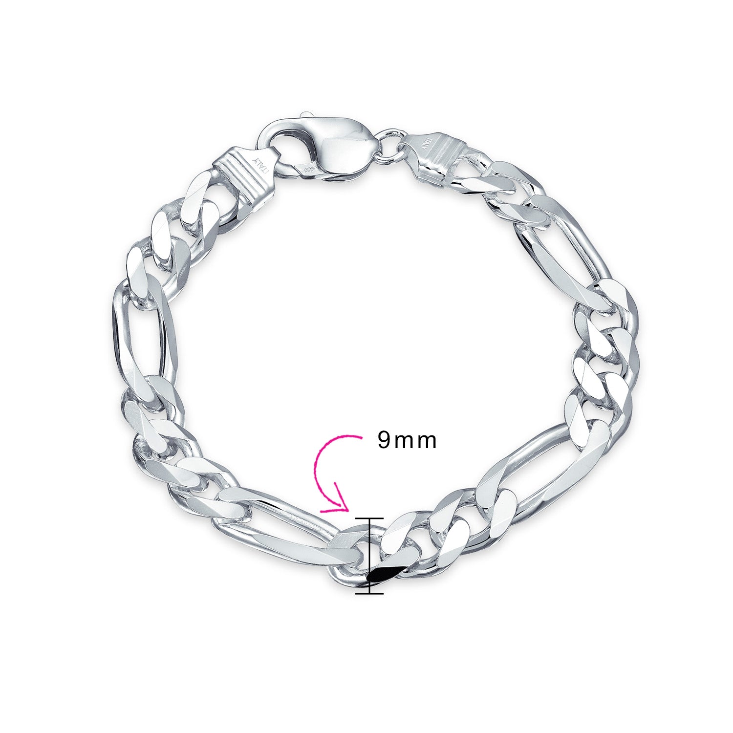 - Masculine Figaro chain, featuring a pattern of three smaller links connected to one elegantly elongated link for a striking visual appeal. The versatile Figaro chain lays flat to ensures a comfortable fit and adds a stylish touch to a basic chain. Effortlessly layer your look with this bracelet, providing endless possibilities. Crafted with a substantial very heavy weight, this chain bracelet combines durability with distinctive style.