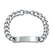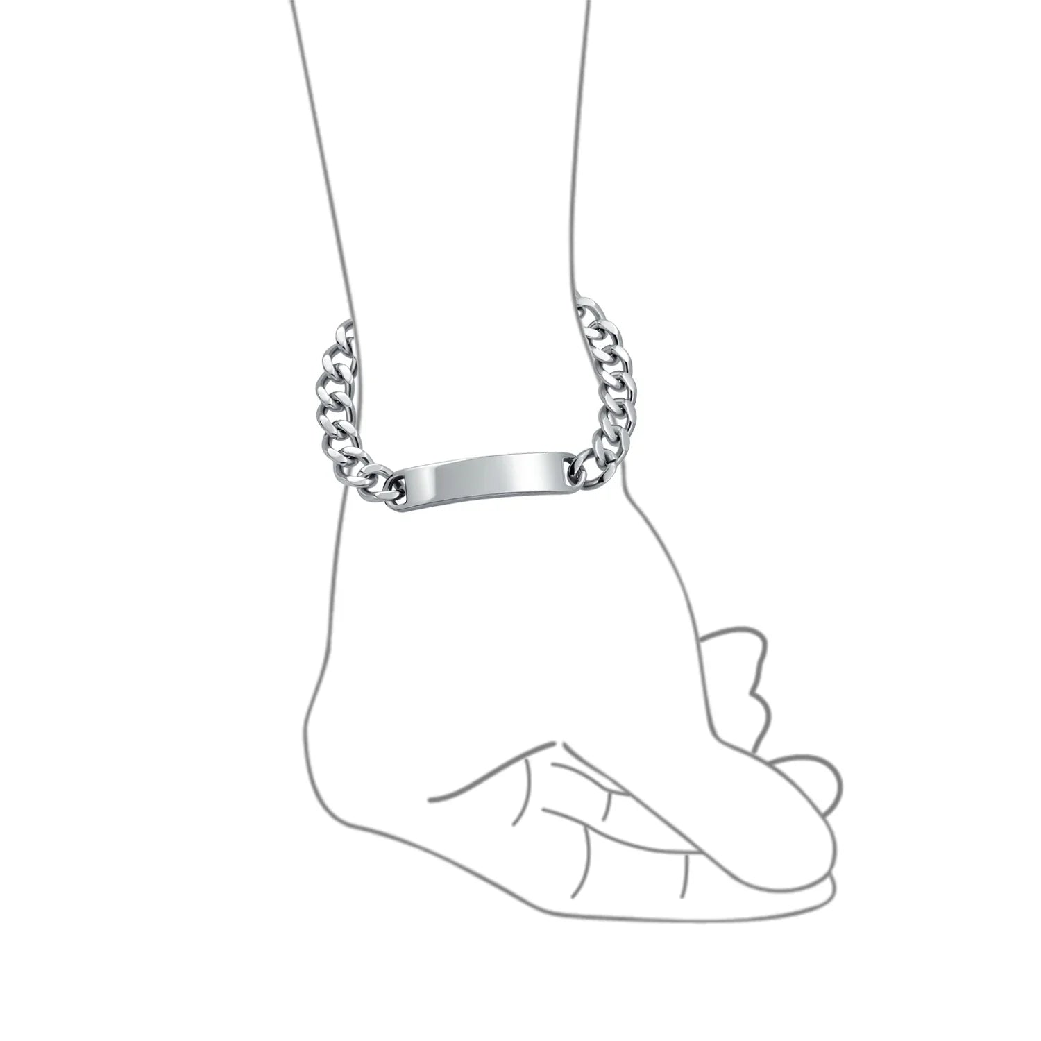 • Introducing our exquisite sterling silver identification bracelet, exuding pure class and elegance. The sleek 1.5" x 0.4" name plate can be personalized with engravings. Showcase your friend's initials or your own name for your beloved husband. This bracelet doubles as a stylish accessory and a medical ID bracelet. Engrave your specific illness or affix a discreet sticker on the back. The sterling silver composition ensures a brilliant shine and exceptional quality. Attached to an extra-large mariner chain, it exudes strength and masculinity. Built to last a lifetime, it's a wise investment. Purchase yours link ID Bracelet today and elevate your style with unparalleled sophistication.