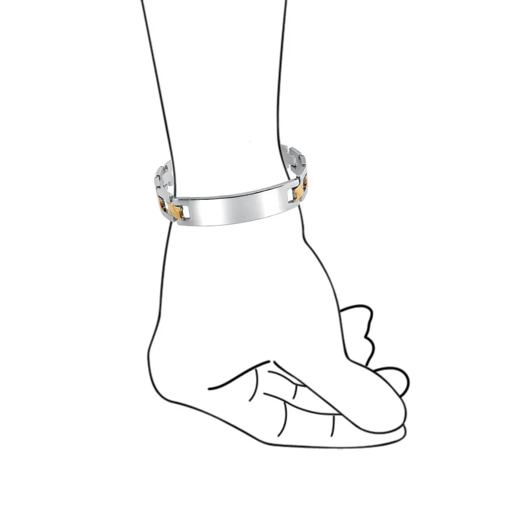- Enhance your style with this exquisite men's Figaro chain link ID bracelet. Crafted from high-quality 925 sterling silver, it features a stunning Figaro link design. The sleek rectangular figaro ID bracelet bar plate adds sophistication. Perfect for the modern gentleman, this bracelet exudes a refined, polished look.