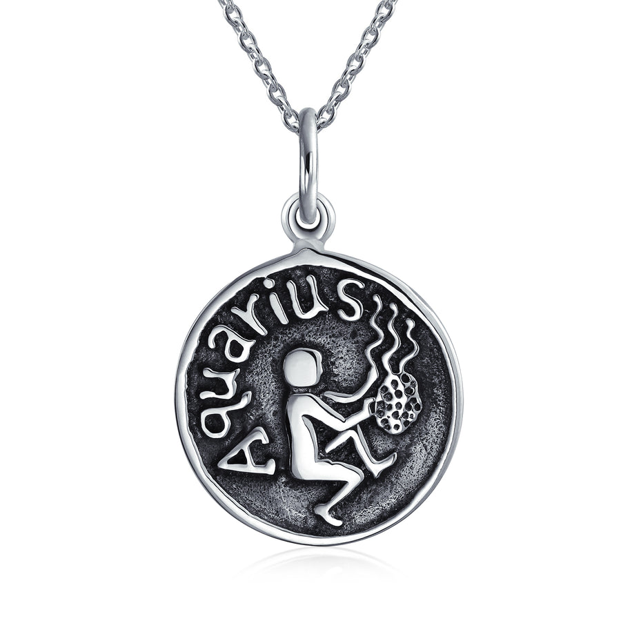 - STUNNING DESIGN - If you know a daydreaming Aquarius with a great sense of fashion, give them the gift of this disc necklace. At 0.75in hanging from a 16in chain, this sterling silver necklace is symbolic of those born between January 20th to February 18th.