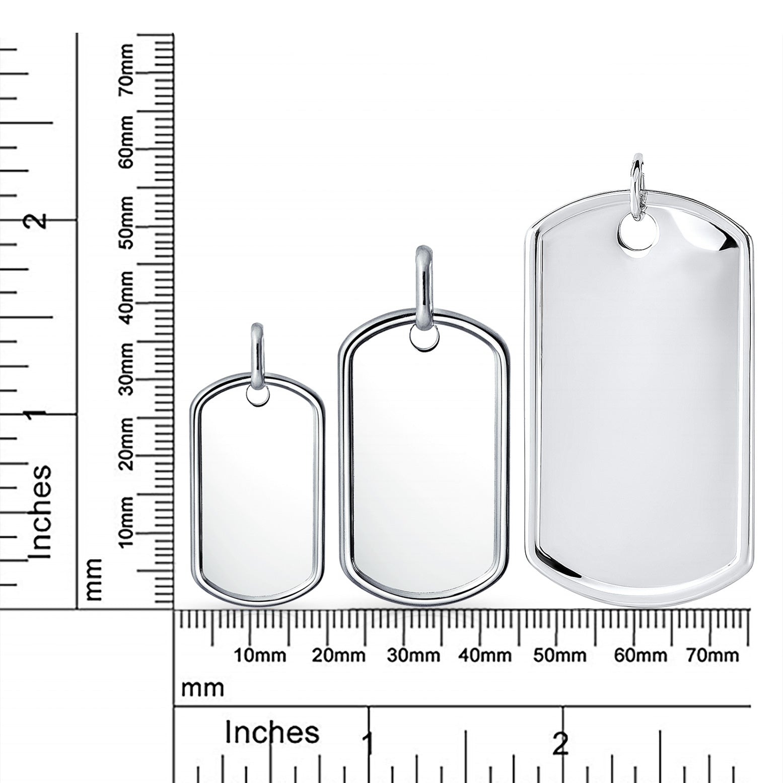 - This eye catching military dog tag pendant was crafted out of sturdy and enthralling .925 Sterling Silver and has a beautiful polished finish design. The 1.5 inch long dog tag is completed with a chain making it into a memorable dog tags necklace that any one can don with all of their fashionable pairs of jeans to any and all occasions out with friends. Give this military dog tag pendant as a gift on any holiday to anyone of your dear friends or family members who has a love for wearing military pendant necklaces and dog tag jewelry. This winsome dog tag pendant makes for the perfect gift for every ones birthday, Christmas, or any other holiday. This ethereal silver dog tags pendant necklace will always be stylish forever and be valued for years by those who enjoy wearing dog tag pendants.