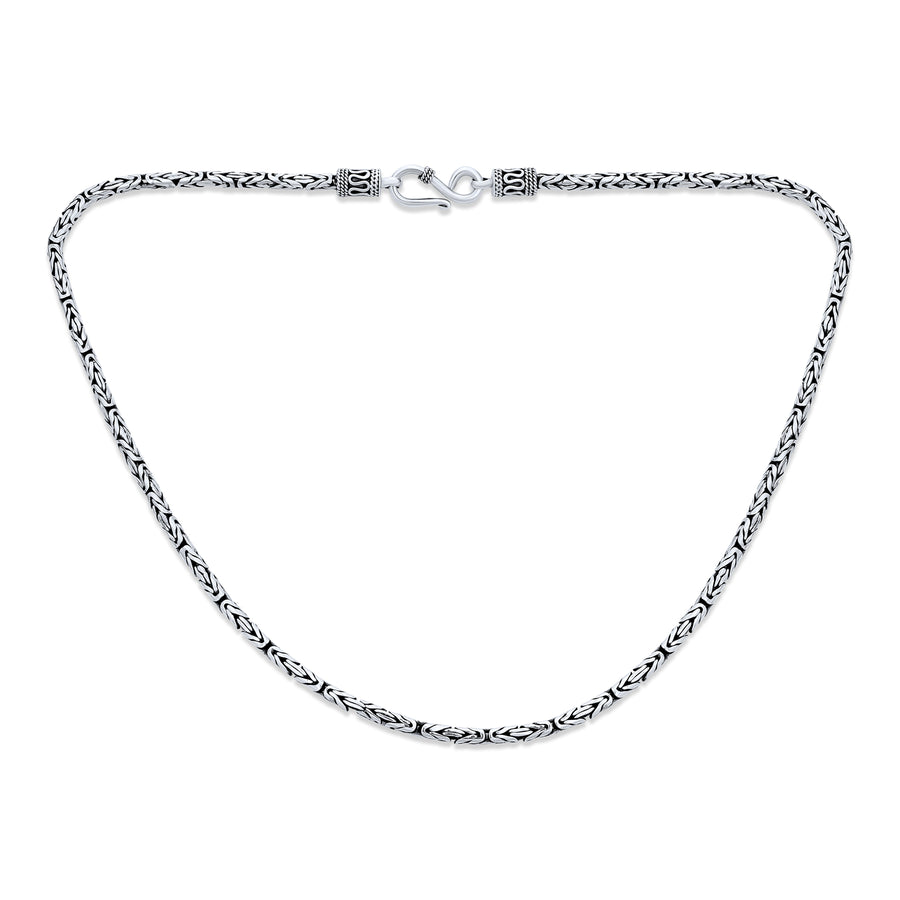 Balinese Handmade 3MM Oxidized Sterling Silver Byzantine Link Chain Necklace
