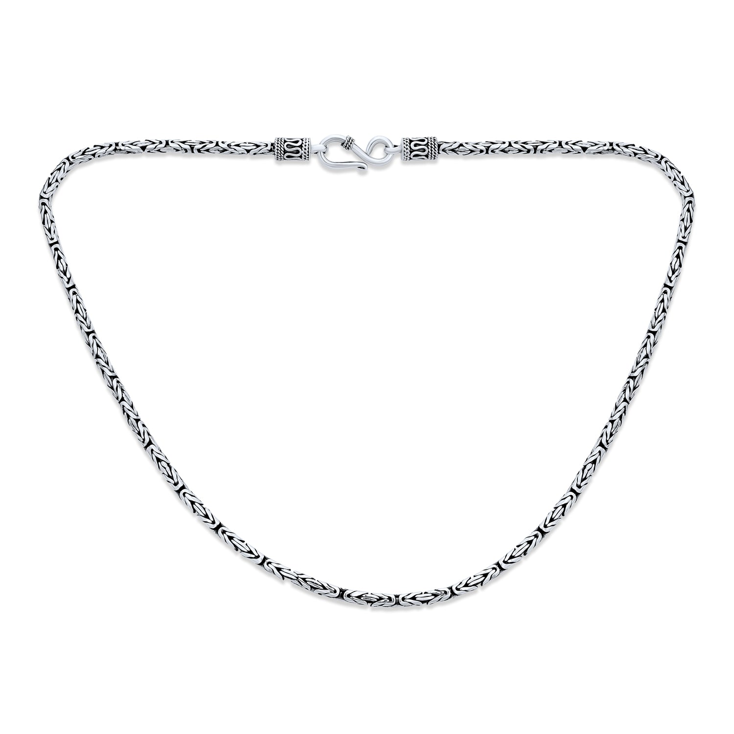 - Hang your favorite charms and pendants from this oxidized sterling silver chain. This Bali style chain has a spring ring clasp, making it a great way to customize your jewelry box. With full creative control you can layer, dress up or dress down this 3 mm unisex chain.