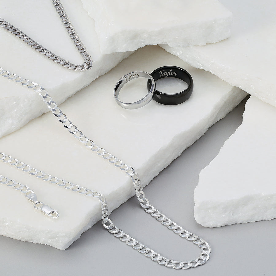 - Contemporary unisex chain necklace with a classic curb link design, offering a lightweight to medium weight for comfortable wear. The visually appealing Cuban chain necklace is secured with a lobster claw clasp for added security. Crafted with a high polished silver shine, this necklace is not only stylish but also highly durable, making it perfect for everyday wear.