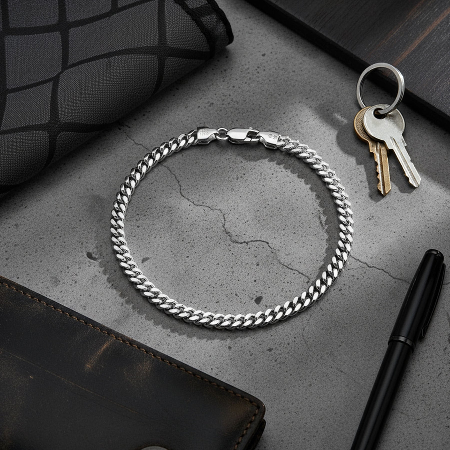 - HANDSOME STYLE - Elevate your look with this masculine chic chain bracelet for men, designed to add a touch of roughed style to any outfit. Crafted with a striking 150 gauge Miami Cuban link chain, this bracelet exudes contemporary appeal. Made entirely of solid lustrous .925 silver, it is a statement piece that will enhance your style.
