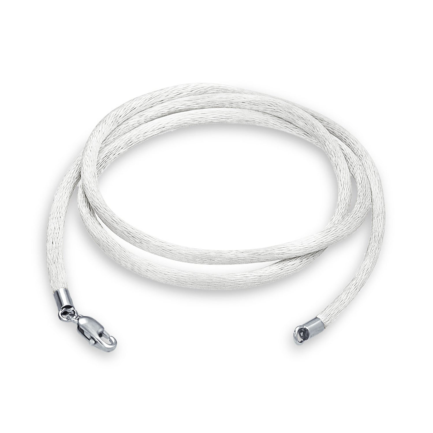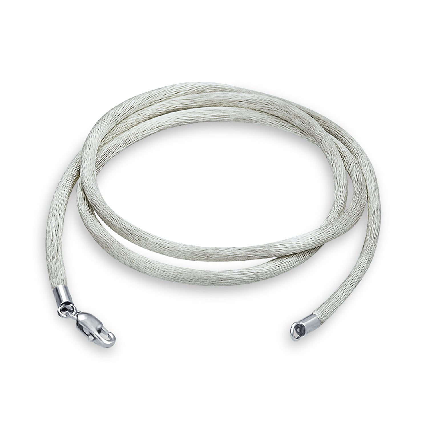 - Experience spontaneity with our exquisite silk cord chain necklace. Elevate your style with this versatile piece. Available in lengths from 14 to 36 inches. Customize your look with your favorite pendants. Comfortable chain ensures a perfect fit. Silver lobster claw clasp adds elegance with a high polished finish. Embrace self-expression and create unique statements daily.