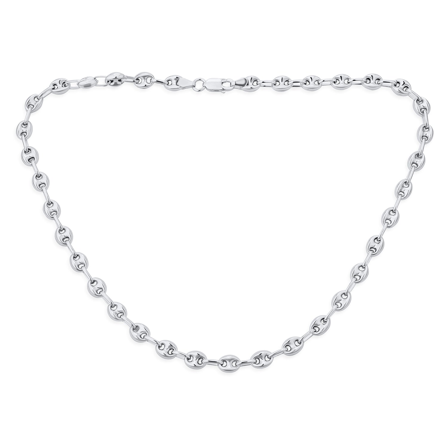 Sterling Silver Nautical Puff Mariner Anchor Link Chain Choker Necklace 6MM