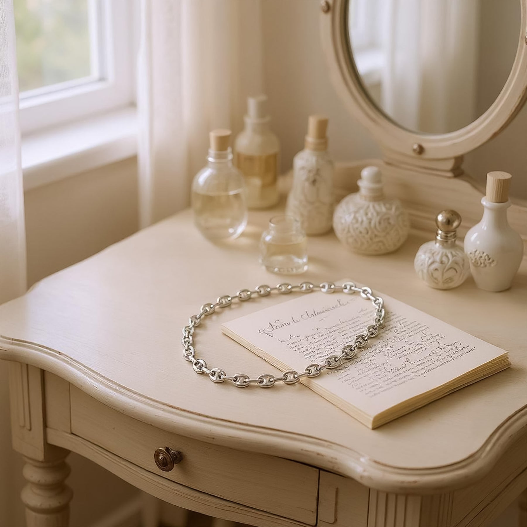 • Substantial Chain - This sophisticated designer chain, popularly known as the Mariner or Anchor chain, draws inspiration from the chains connected to anchors in the nautical world. It is a beautiful choice for anyone who has a fondness for the sea. Not only is it comfortable to wear around your neck, puff links are hollow yet sturdy, ensuring durability.