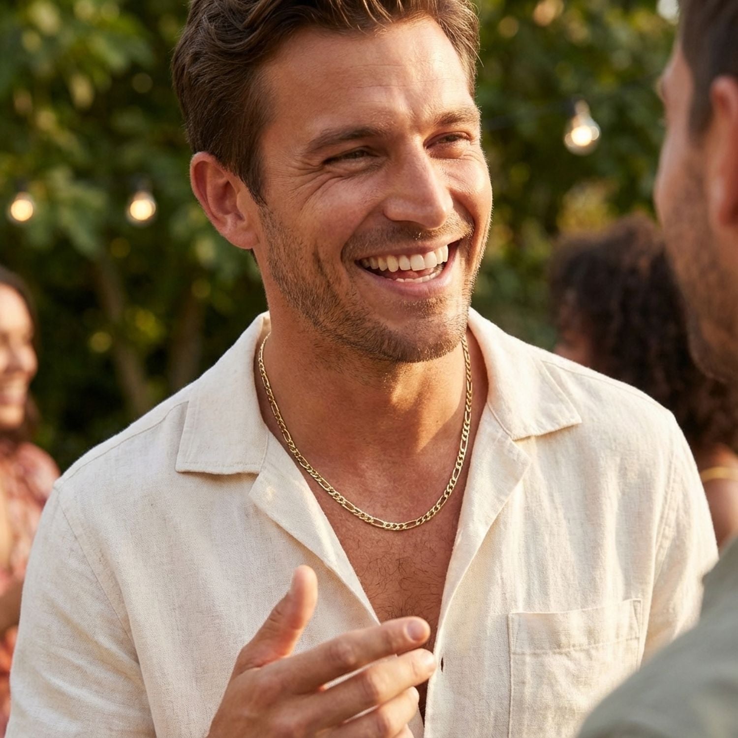 - Elevate your style with our men's Figaro necklace, featuring a captivating pattern that adds a touch of sophistication to any outfit