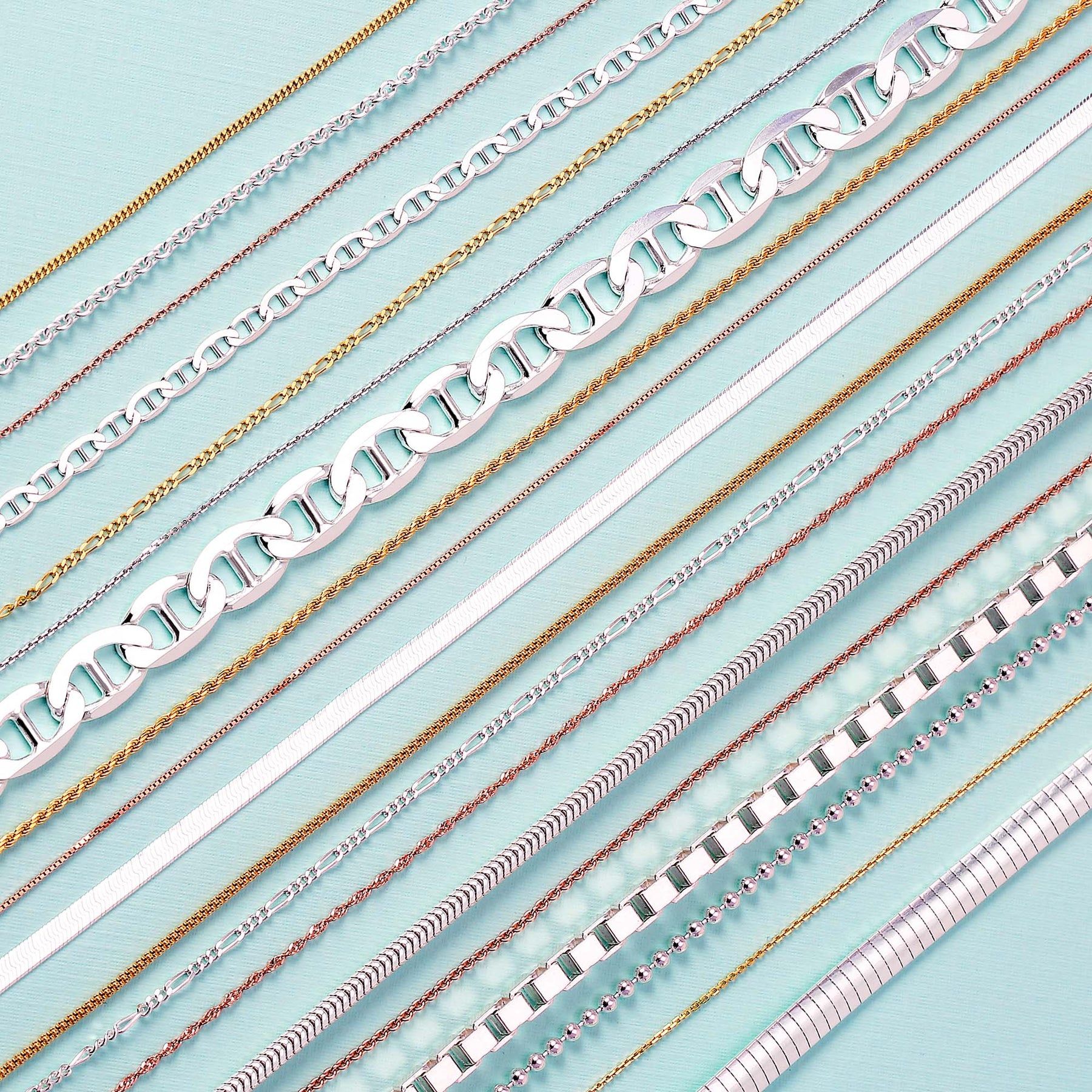 - With its delicate and minimalist 1mm width, this chain offers endless possibilities for dressing up, down, or layering to create your desired look.