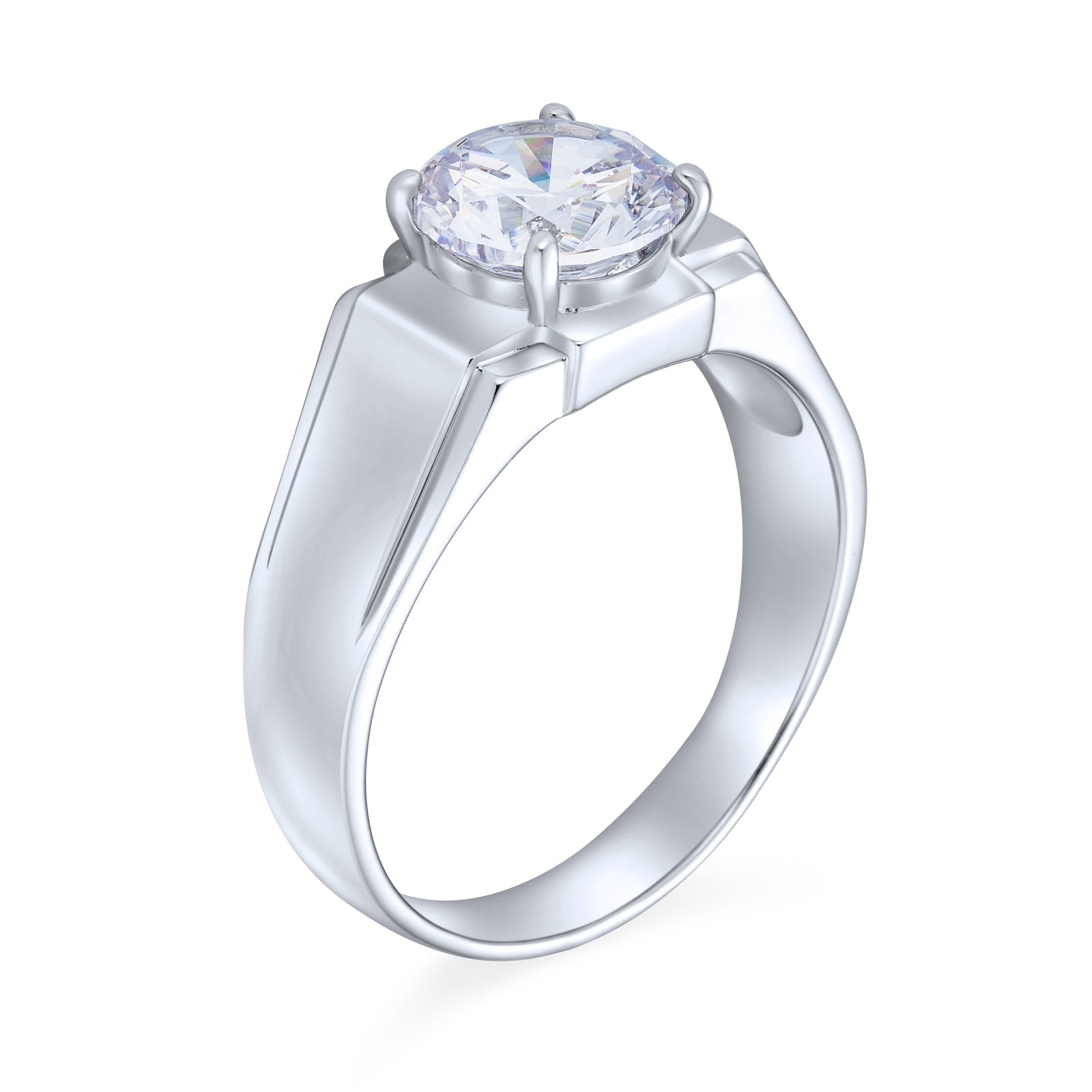 • SPARKLING STYLE - Elevate the style of the special man in your life with this dapper men's fashion engagement ring. Featuring a stunning 6CT round shape cz solitaire stone at the center, this ring is complemented by a sleek matte wrap around design on a modern rhodium plated brass band.