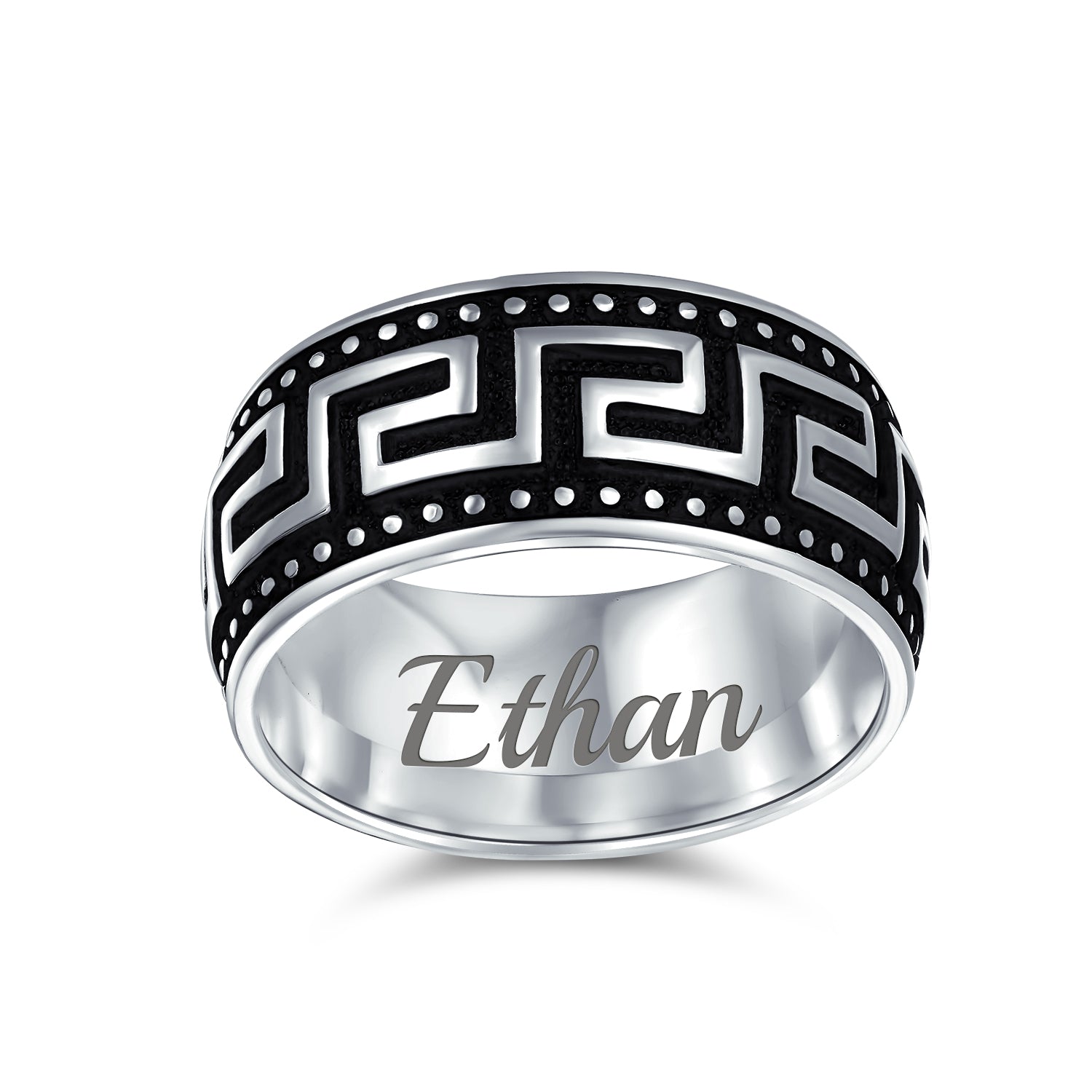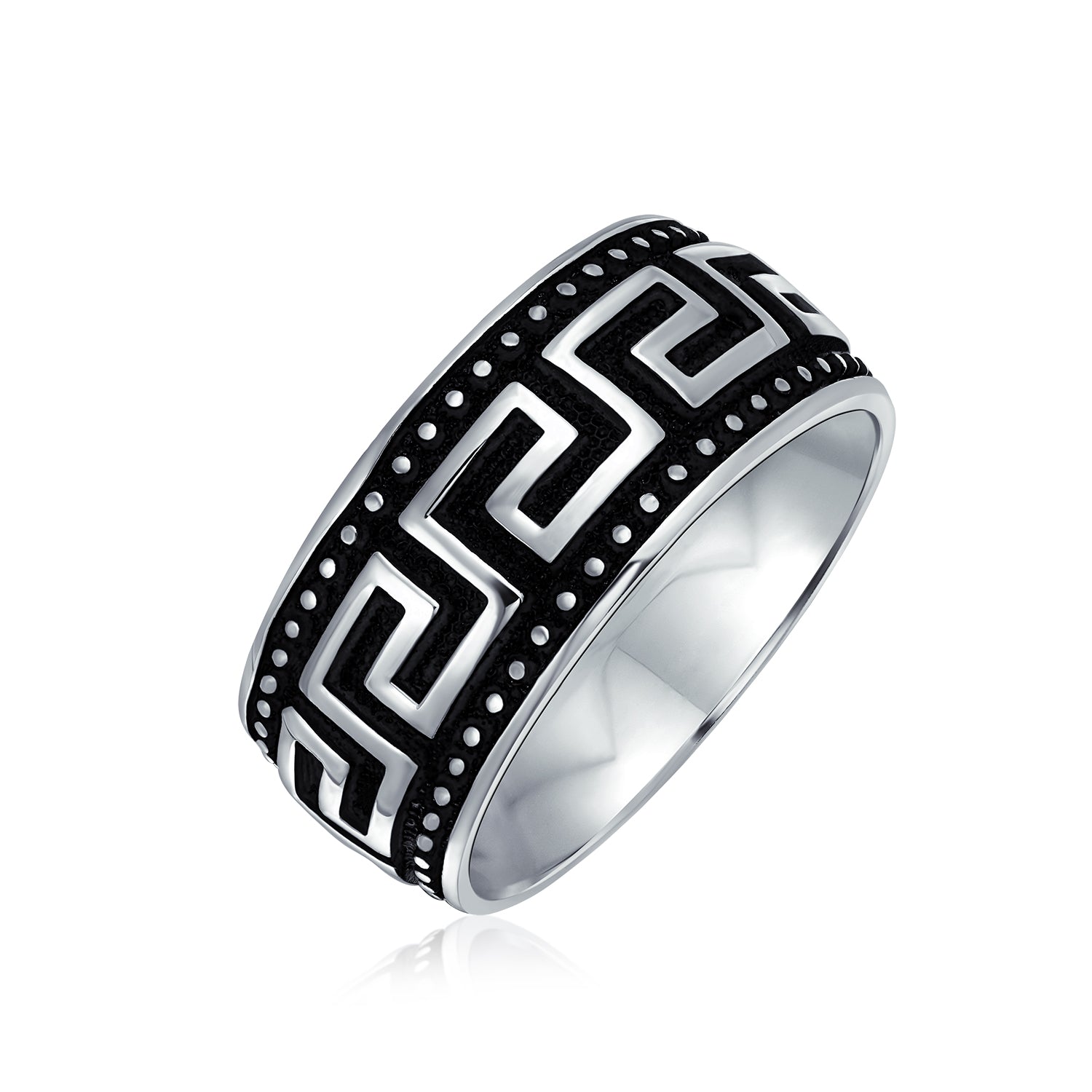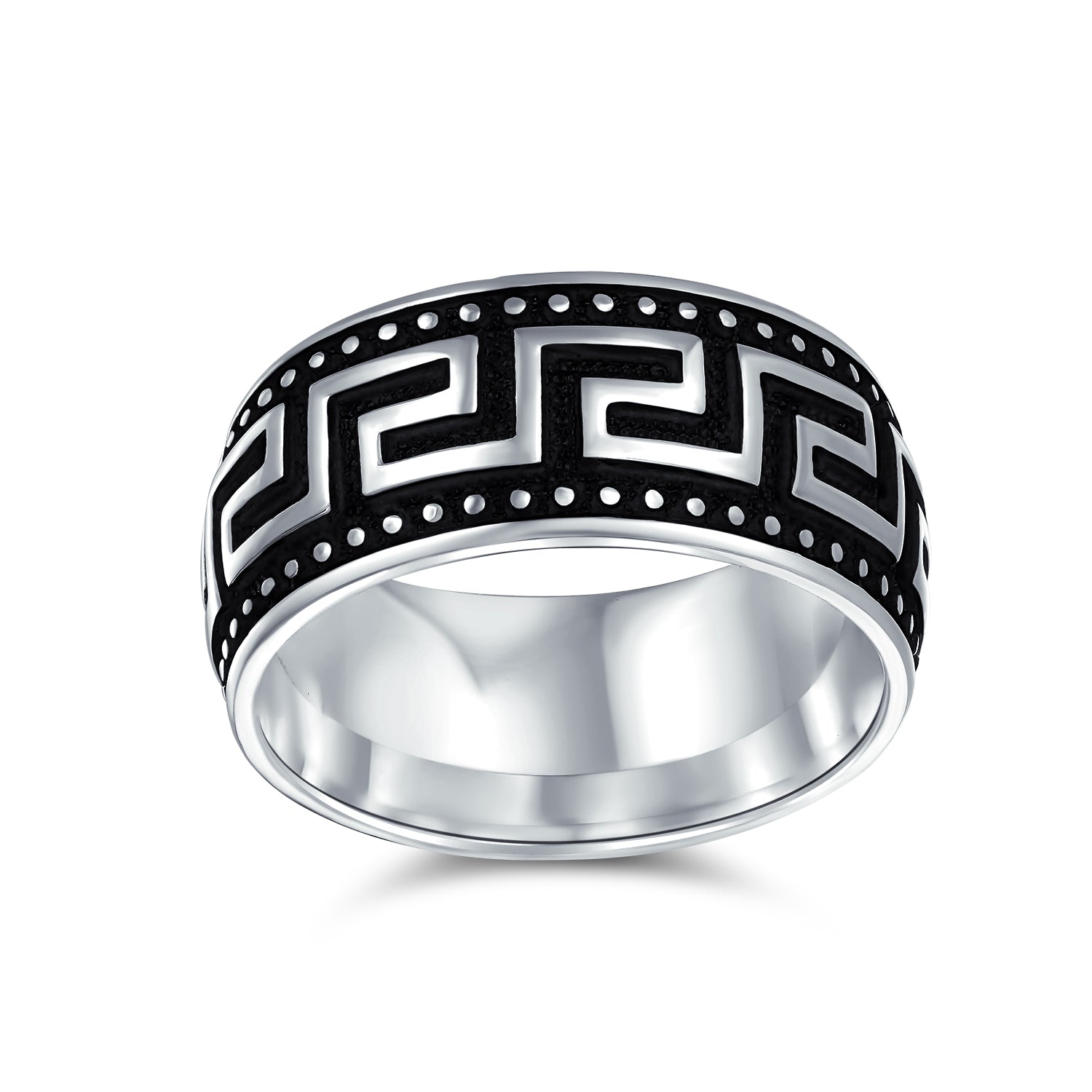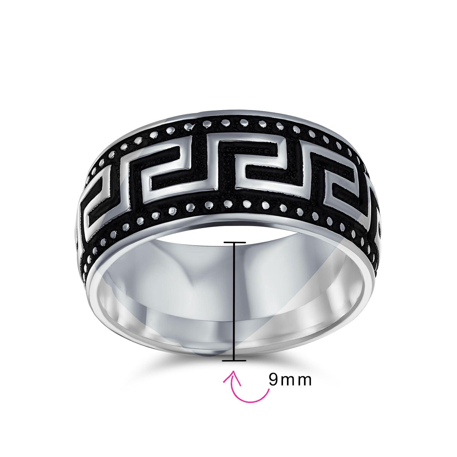 • Elevate his style with this bold, two-tone Greek Key wedding band. Crafted from .925 sterling silver, the 9MM wide band features a blackened geometric Greek key motif, symbolizing unity, infinity, and strength. Inspired by ancient Roman tradition with a modern twist, this textured ring exudes masculine elegance and sophistication. Perfect for anniversaries, Father’s Day, weddings, or any special occasion. A timeless piece that adds style and meaning to any look.