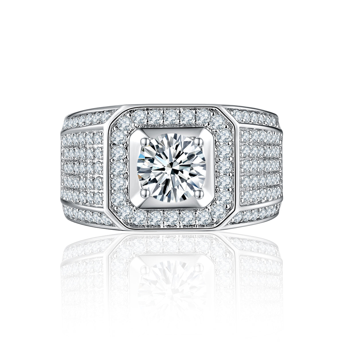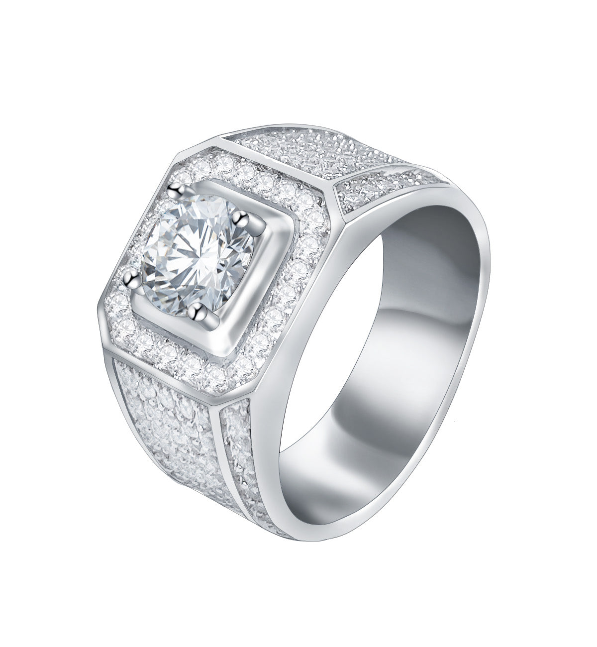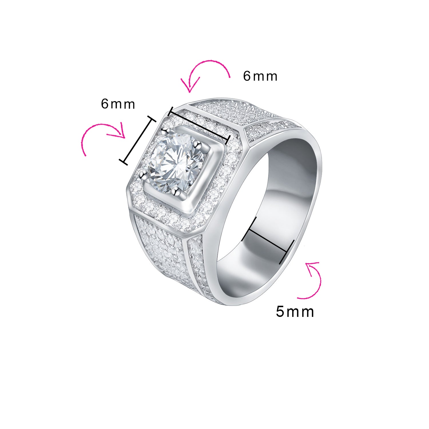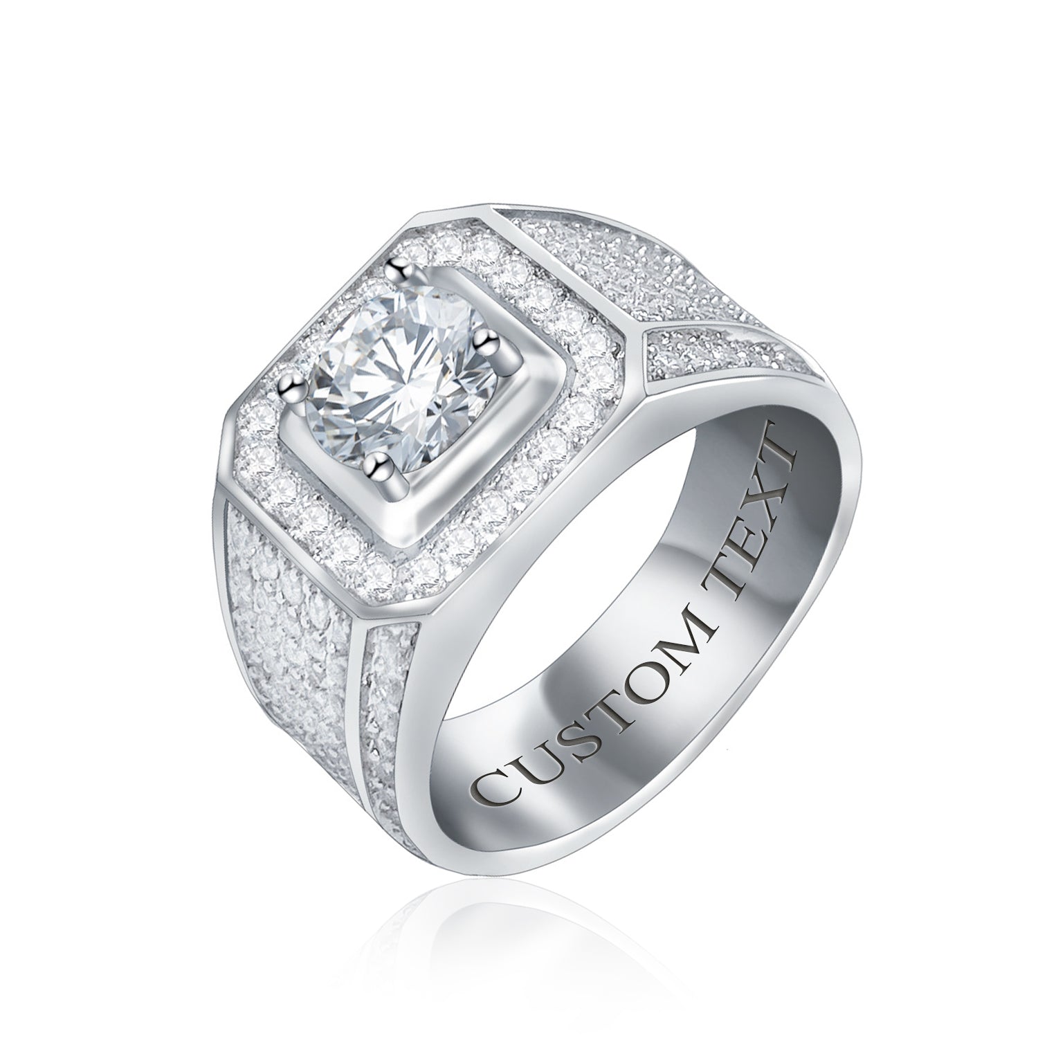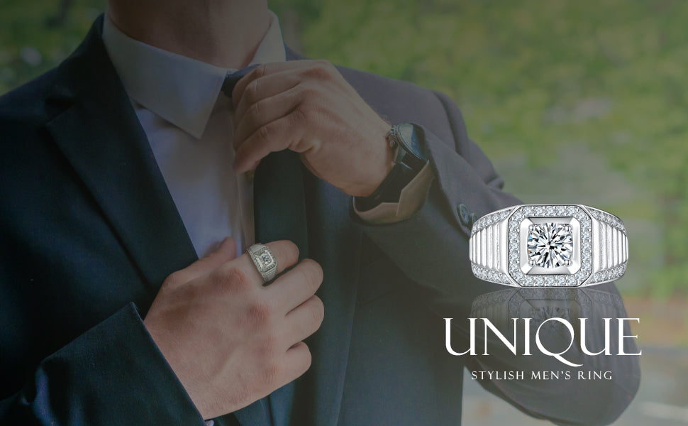 - STUNNING DESIGN - Show your favorite man how much you care with this distinguished men's engagement ring or hip hop signet cocktail ring. Featuring a handsome design with a princess cut square 2.5 CTCZ center stone, enhanced halo, and matte ridge band with side CZ accents.
