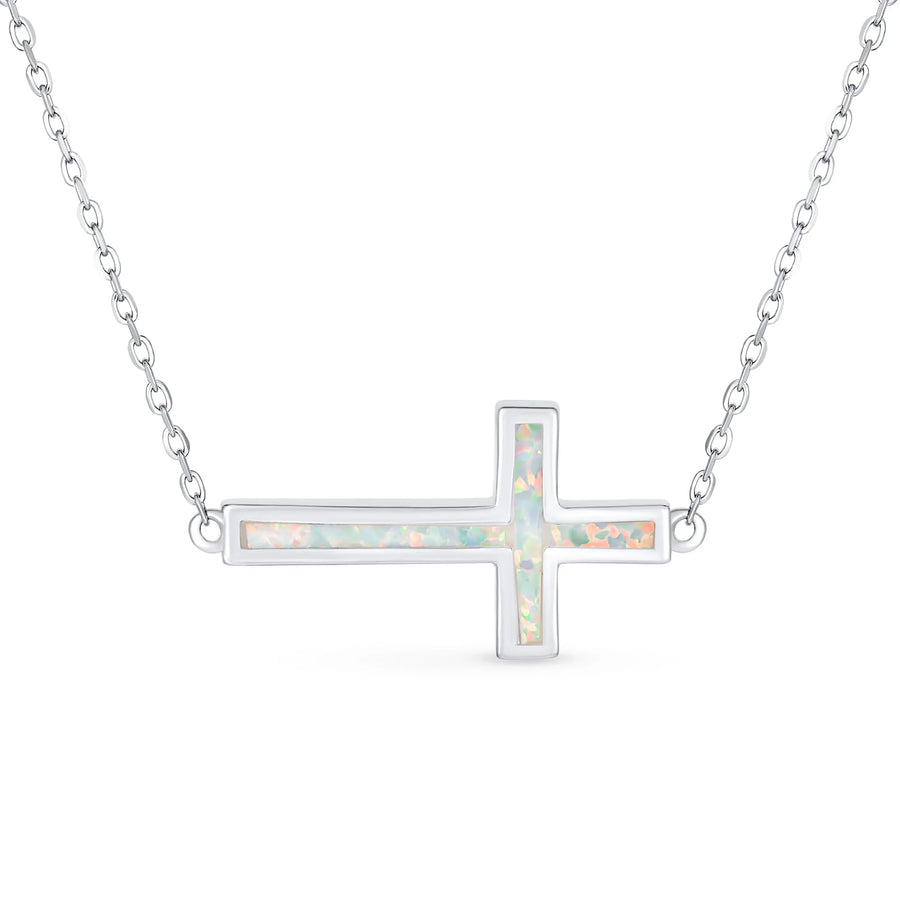 - SPIRITUAL DESIGN - Ever popular cross motif perfect for adding refined and feminine look to your outfit. Opal sideways cross modern pendant is sure to stand out, with color changing white opal inlay sterling silver and chain. This is the perfect Easter wear to impress as you recognize your faith and religious devotion.