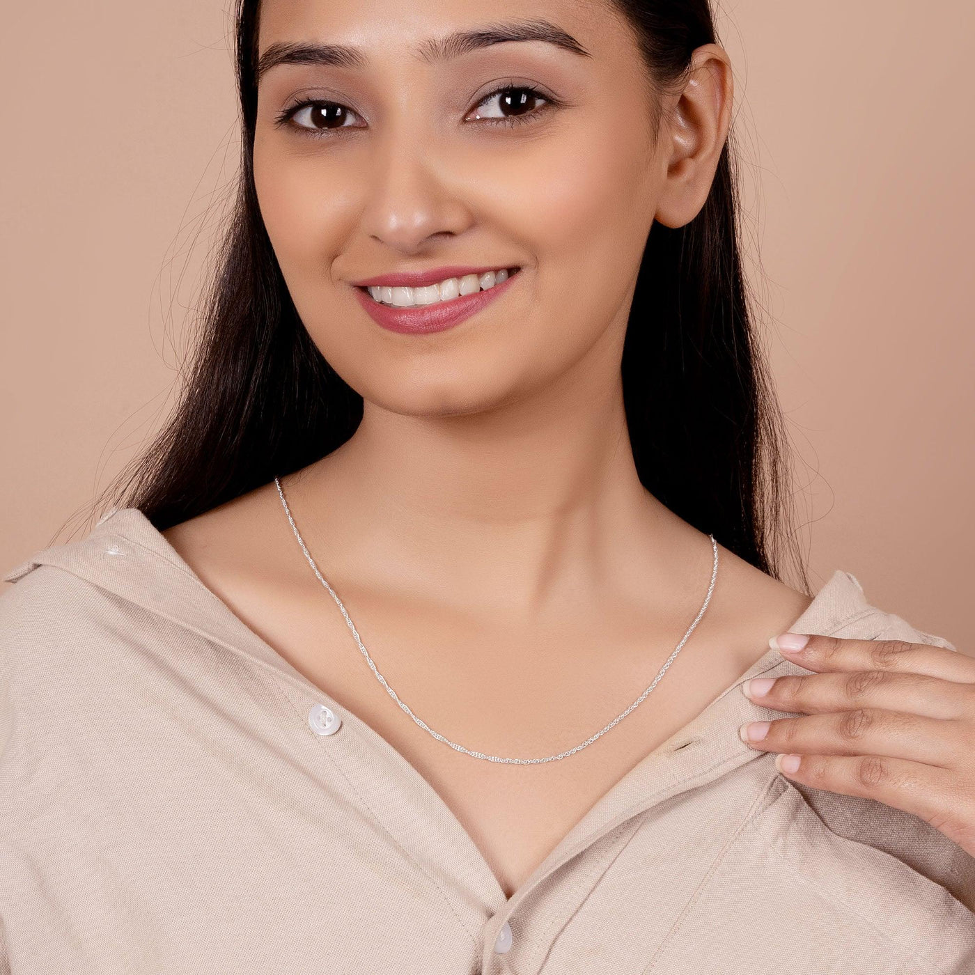 • This Singapore chain is remarkable. Singapore chains reflect beautifully in the light due to the woven intricate style of the chain. This 2mm Singapore necklace is made from .925 Sterling Silver. The silver shines and shimmers when the light catches its reflection and the chain is irresistible. This .925 Sterling Silver necklace is a perfect compliment to both a casual outfit or more formal wear. With its affordable price tag, consider this unisex chain for all those on your holiday shopping list. Order yours today.