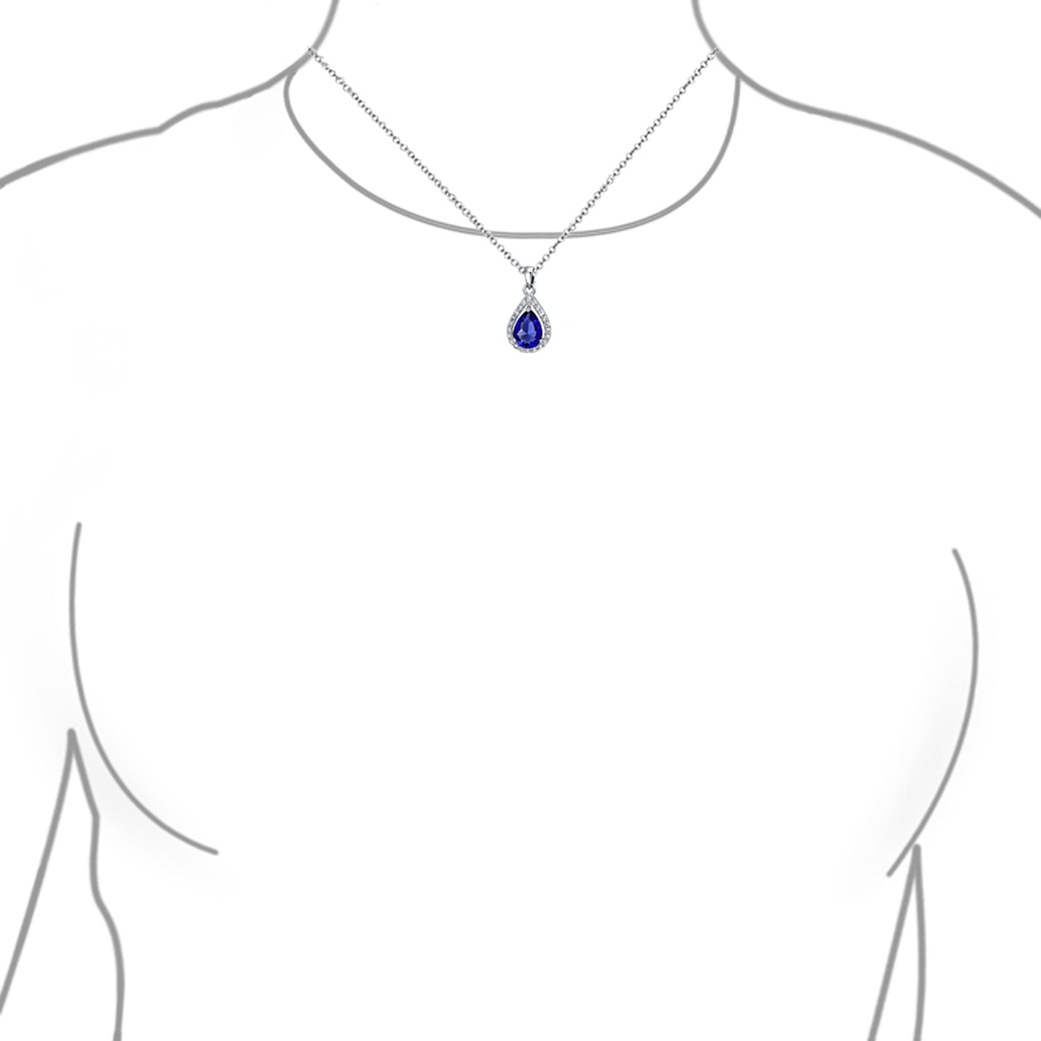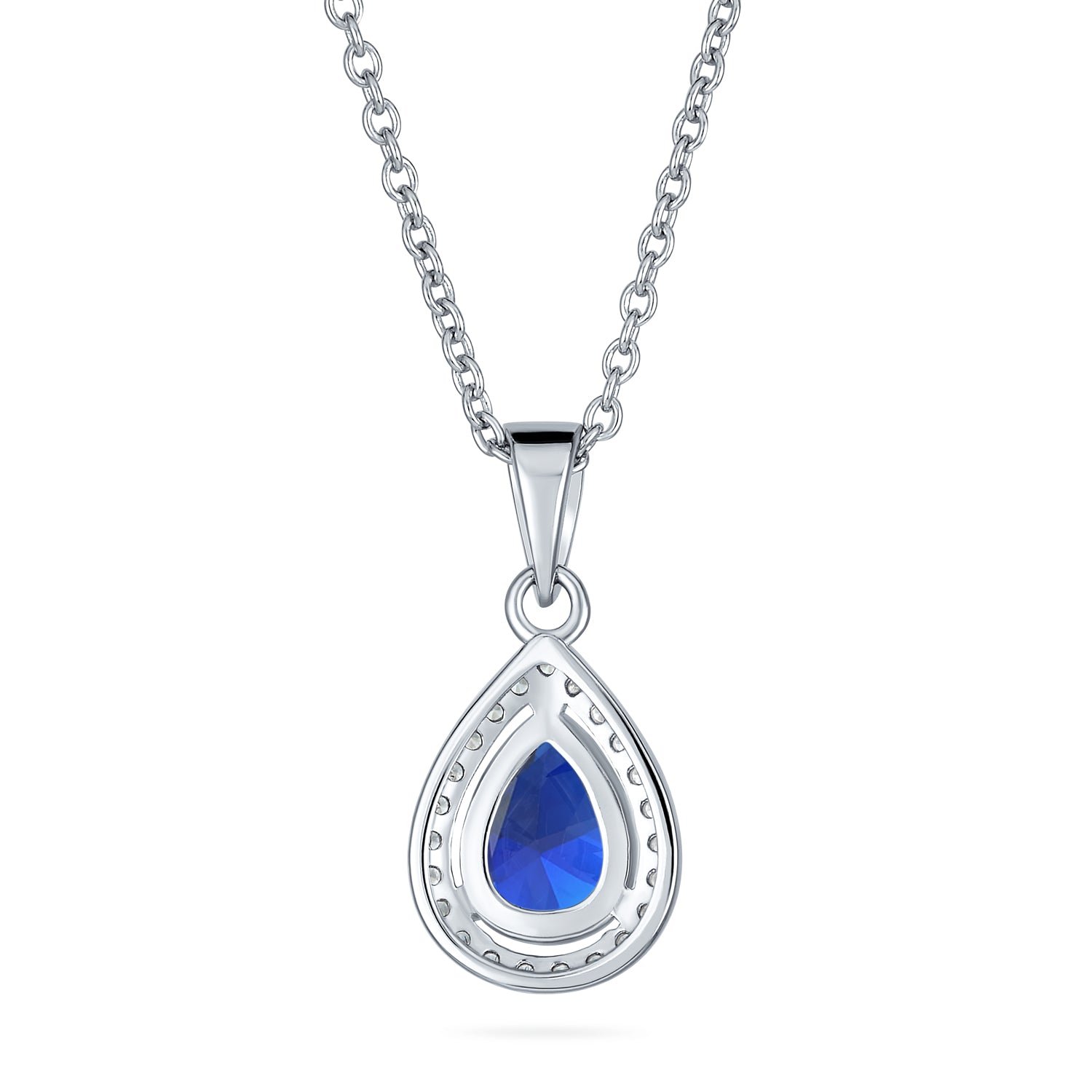 - Ideal gift for bridesmaids and September birthdays, this lightweight, dainty dark blue teardrop pendant with a clear CZ halo accent adds sophistication and grace to any outfit.