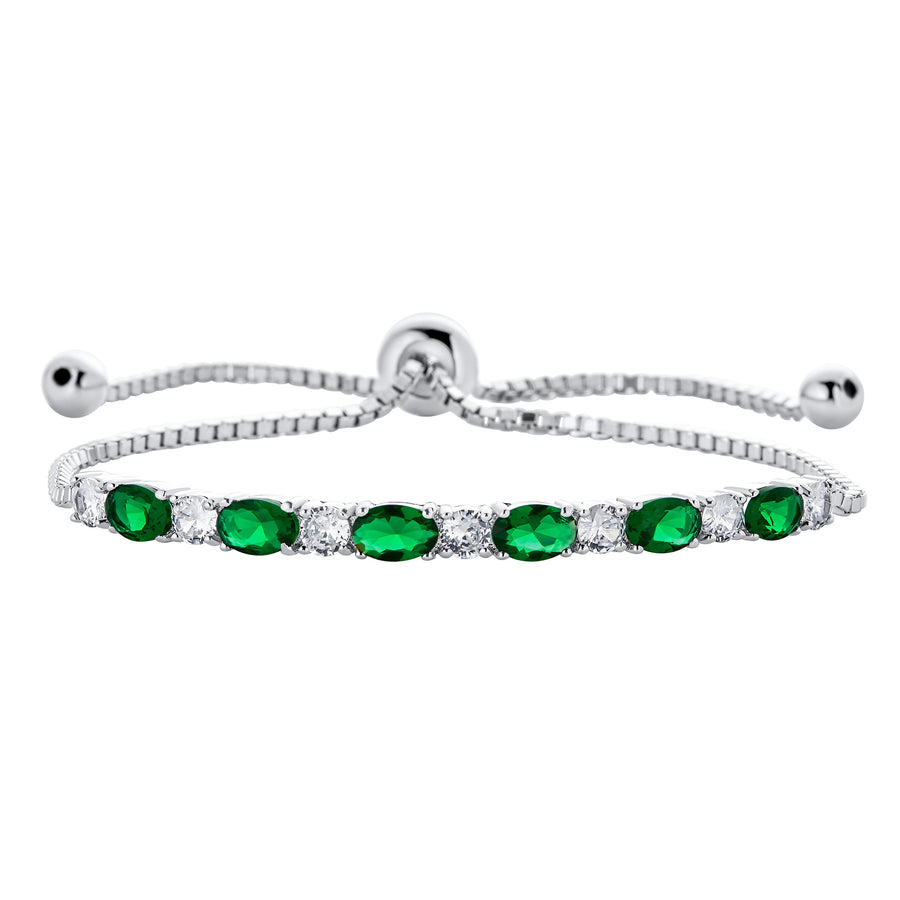 - Elevate your style with this Cocktail Bolo Style tennis bracelet, featuring six green oval stones and seven alternating clear round stones in a contoured curved setting. A must-have for women of any age, it's the perfect gift for Valentine's Day or any special occasion. The bolo-style slide closure with finials caps the chain ends, while the lariat styling and bead with rubber lining ensure a secure fit.