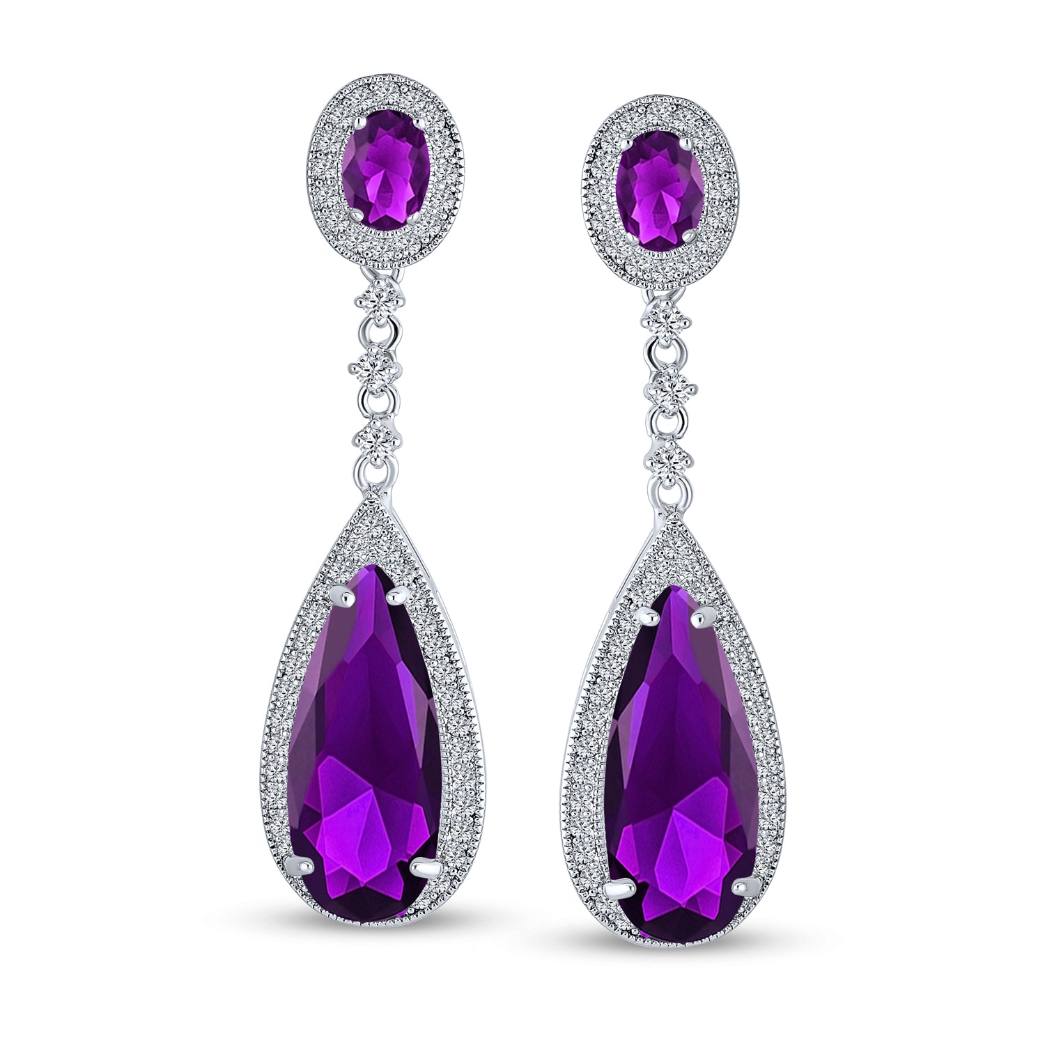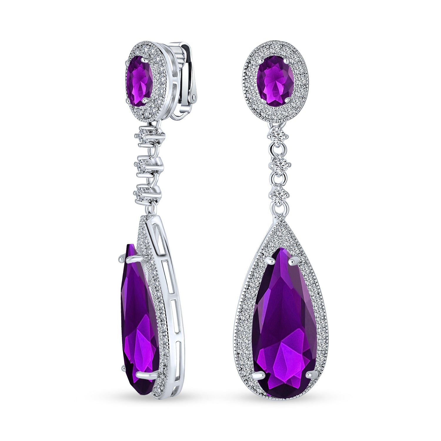- Radiate Hollywood glamour on your special day in these enthralling brass bridal drop earrings. Boasting glistening simulated dark emerald czs with a long, dangling cz teardrop, enhanced by pave cz accents in a captivating chandelier design.
