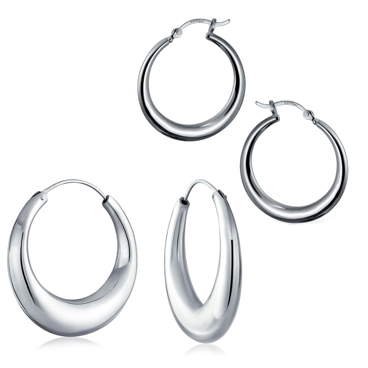 - Elevate your look with this sterling silver hoop earring set, featuring sleek lustrous hoops and lightweight, high-polished hollow designs that offer modern glamour and effortless, seamless wear—perfect for adding timeless shine to any outfit, day or night.